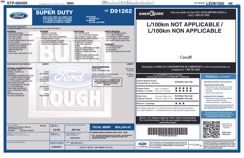 2020 Ford F-250SD Platinum Truck Power Stroke V8 DI 32V OHV Turbodiesel