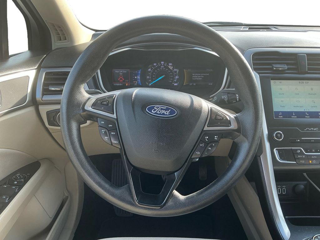2020 Ford Fusion SE Iconic Silver Metallic SE FWD 6-Speed Automatic 1.5L EcoBoost 6-Speed Automatic, 4-Wheel Disc Brakes, 6 Speakers, ABS brakes, Air Conditioning, Alloy wheels, AM/FM radio: SiriusXM, Auto High-beam Headlights, Auto Start-Stop Technology, Auto-dimming Rear-View mirror, Automatic temperature control, Brake assist, Bumpers: body-color, Cloth Front Bucket Seats, Compass, Delay-off headlights, Driver door bin, Driver vanity mirror, Dual front impact airbags, Dual front side impact airbags, Electronic Stability Control, Emergency communication system: SYNC 3 911 Assist, Equipment Group 150A, Exterior Parking Camera Rear, Four wheel independent suspension, Front anti-roll bar, Front Bucket Seats, Front Center Armrest, Front dual zone A/C, Front License Plate Bracket, Front reading lights, Fully automatic headlights, Illuminated entry, Knee airbag, Low tire pressure warning, Occupant sensing airbag, Outside temperature display, Overhead airbag, Overhead console, Panic alarm, Passenger door bin, Passenger vanity mirror, Power door mirrors, Power driver seat, Power steering, Power windows, Radio data system, Radio: AM/FM/MP3 Stereo, Rain sensing wipers, Rear anti-roll bar, Rear reading lights, Rear seat center armrest, Rear window defroster, Remote keyless entry, Security system, SiriusXM Radio, Speed control, Speed-sensing steering, Speed-Sensitive Wipers, Split folding rear seat, Steering wheel mounted audio controls, SYNC 3 Communications & Entertainment System, Tachometer, Telescoping steering wheel, Tilt steering wheel, Traction control, Trip computer, Variably intermittent wipers, Wheels: 17" Sparkle Silver-Painted Aluminum, 6-Speed Automatic.