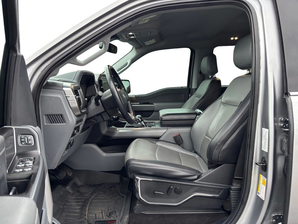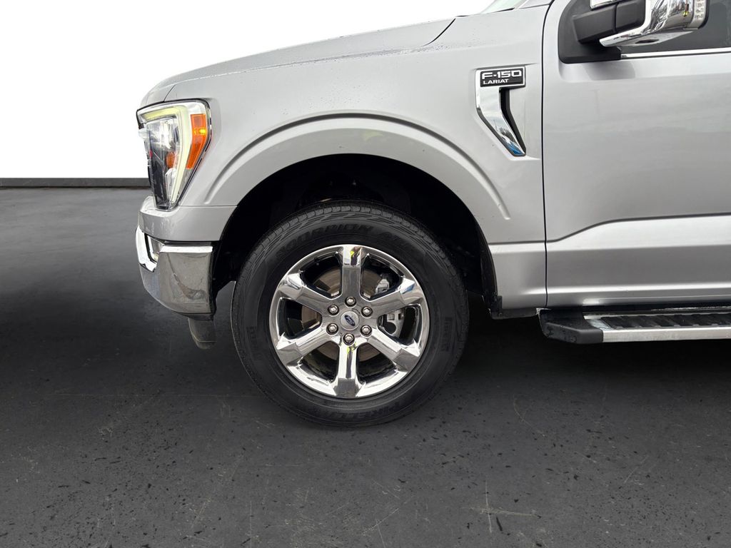 2022 Ford F-150 Lariat Iconic Silver Metallic Lariat 4WD 10-Speed Automatic 5.0L V8 4WD, 18" Machined-Aluminum Wheels, 3.31 Axle Ratio, 4-Wheel Disc Brakes, 6" Bright Polished Running Board, 7 Speakers, ABS brakes, Adjustable pedals, Air Conditioning, Alloy wheels, AM/FM radio: SiriusXM with 360L, Auto High-beam Headlights, Auto-dimming door mirrors, Auto-dimming Rear-View mirror, Automatic temperature control, Brake assist, Bumpers: chrome, Chrome 2-Bar Grille w/4 Minor Bars, Chrome Door & Tailgate Handles w/Body-Color Bezel, Chrome Single-Tip Exhaust, Chrome Skull Caps on Exterior Mirrors, Class IV Trailer Hitch Receiver, Compass, Delay-off headlights, Driver door bin, Driver vanity mirror, Dual front impact airbags, Dual front side impact airbags, Electronic Stability Control, Emergency communication system: SYNC 4 911 Assist, Equipment Group 501A Mid, Exterior Parking Camera Rear, Front anti-roll bar, Front Center Armrest w/Storage, Front dual zone A/C, Front fog lights, Front License Plate Bracket, Front reading lights, Front wheel independent suspension, Fully automatic headlights, Heated door mirrors, Heated front seats, Illuminated entry, Integrated Trailer Brake Controller, Interior Work Surface, Lariat Chrome Appearance Package, Leather-Trimmed 40/20/40 Front Seat, Leather-Trimmed Bucket Seats, Low tire pressure warning, Memory seat, Occupant sensing airbag, Outside temperature display, Overhead airbag, Overhead console, Panic alarm, Passenger door bin, Passenger vanity mirror, Pedal memory, Power door mirrors, Power driver seat, Power passenger seat, Power steering, Power windows, Pro Trailer Backup Assist, Radio data system, Radio: AM/FM SiriusXM w/360L, Rear reading lights, Rear seat center armrest, Rear step bumper, Rear window defroster, Remote keyless entry, Security system, Speed control, Speed-sensing steering, Split folding rear seat, Steering wheel mounted audio controls, SYNC 4 w/Enhanced Voice Recognition, Tachometer, Telescoping steering wheel, Tilt steering wheel, Traction control, Trailer Tow Package, Trip computer, Turn signal indicator mirrors, Variably intermittent wipers, Ventilated front seats, Voltmeter, Wheels: 18" Chrome-Like PVD, Wheels: 20" Chrome-Like PVD, 4WD.