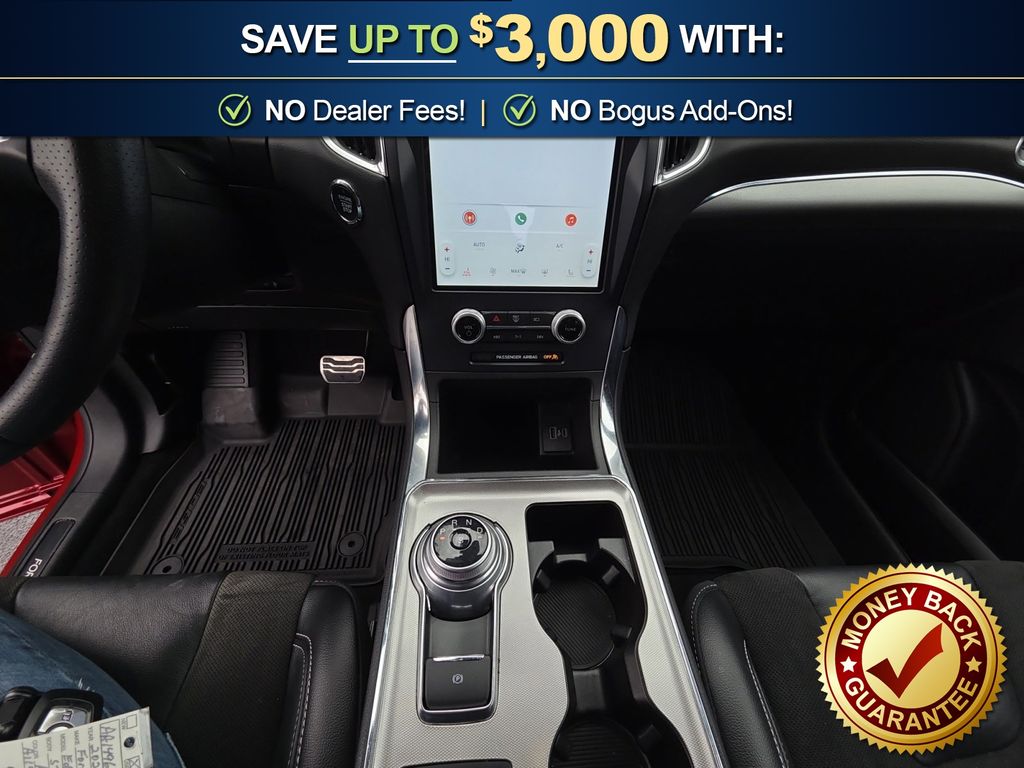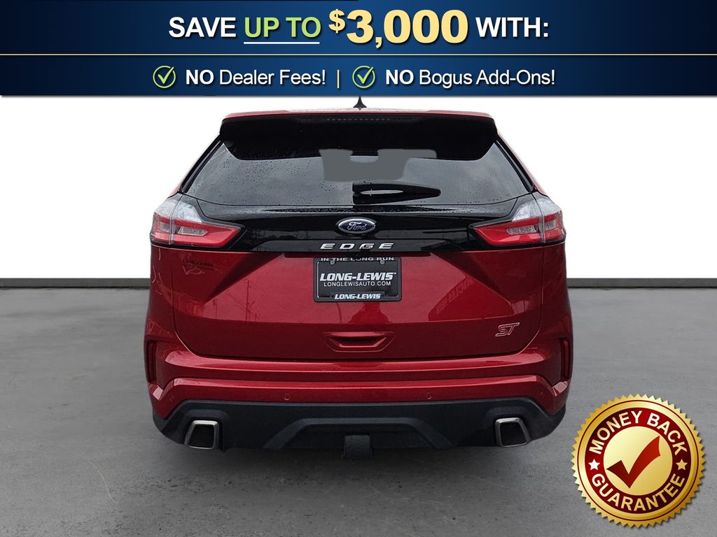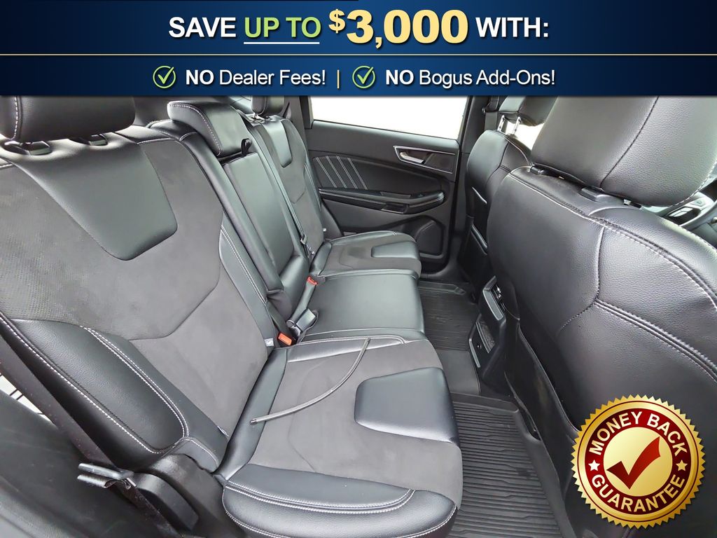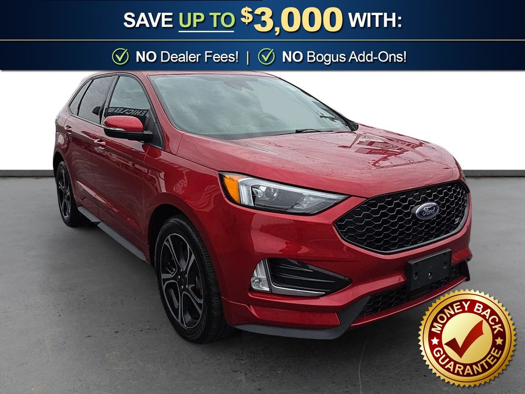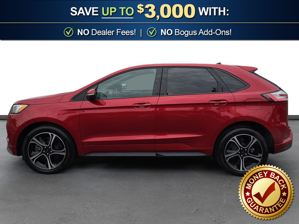 AWD, 12 Speakers, 3.39 Axle Ratio, 4-Wheel Disc Brakes, ABS brakes, Air Conditioning, Alloy wheels, AM/FM radio: SiriusXM with 360L, Auto High-beam Headlights, Auto-dimming Rear-View mirror, Automatic temperature control, Brake assist, Bumpers: body-color, Compass, Delay-off headlights, Driver door bin, Driver vanity mirror, Dual front impact airbags, Dual front side impact airbags, Electronic Stability Control, Emergency communication system: SYNC 4 911 Assist, Equipment Group 400A, FordPass Connect, Four wheel independent suspension, Front anti-roll bar, Front Bucket Seats, Front Center Armrest w/Storage, Front dual zone A/C, Front fog lights, Front License Plate Bracket, Front reading lights, Fully automatic headlights, Heated door mirrors, Heated front seats, Illuminated entry, Knee airbag, Leather steering wheel, Leather-Trimmed Heated ST Bolstered Bucket Seats, Leather-Trimmed Htd ST Bolstered Bucket Seats, Low tire pressure warning, Memory seat, Occupant sensing airbag, Outside temperature display, Overhead airbag, Overhead console, Panic alarm, Passenger door bin, Passenger vanity mirror, Power door mirrors, Power driver seat, Power Liftgate, Power passenger seat, Power steering, Power windows, Race Red & Raptor Blue Accent Stitching, Radio: B&O Sound System by Bang & Olufsen, Rain sensing wipers, Rear anti-roll bar, Rear Parking Sensors, Rear reading lights, Rear seat center armrest, Rear window defroster, Rear window wiper, Remote keyless entry, Security system, SiriusXM w/360L, Speed control, Speed-Sensitive Wipers, Split folding rear seat, Spoiler, Steering wheel mounted audio controls, SYNC 4A w/Enhanced Voice Recognition, Tachometer, Telescoping steering wheel, Tilt steering wheel, Traction control, Trip computer, Turn signal indicator mirrors, Variably intermittent wipers, Wheels: 20" Bright-Machined Aluminum, AWD. 2023 Ford Edge ST