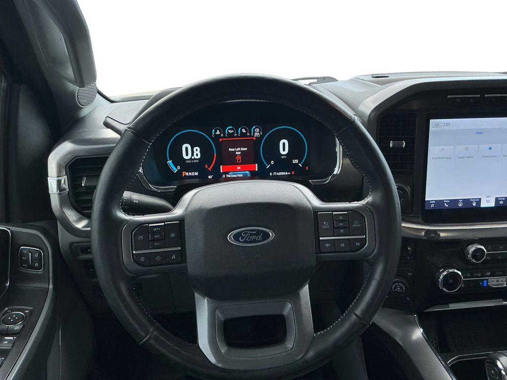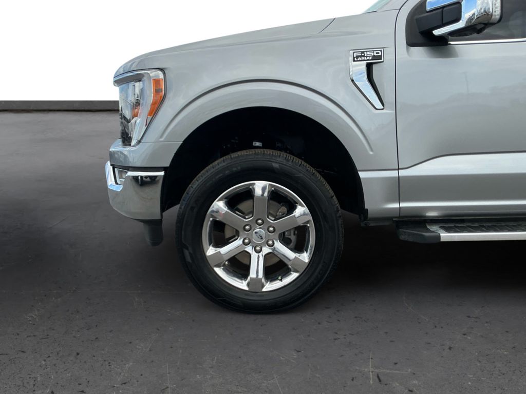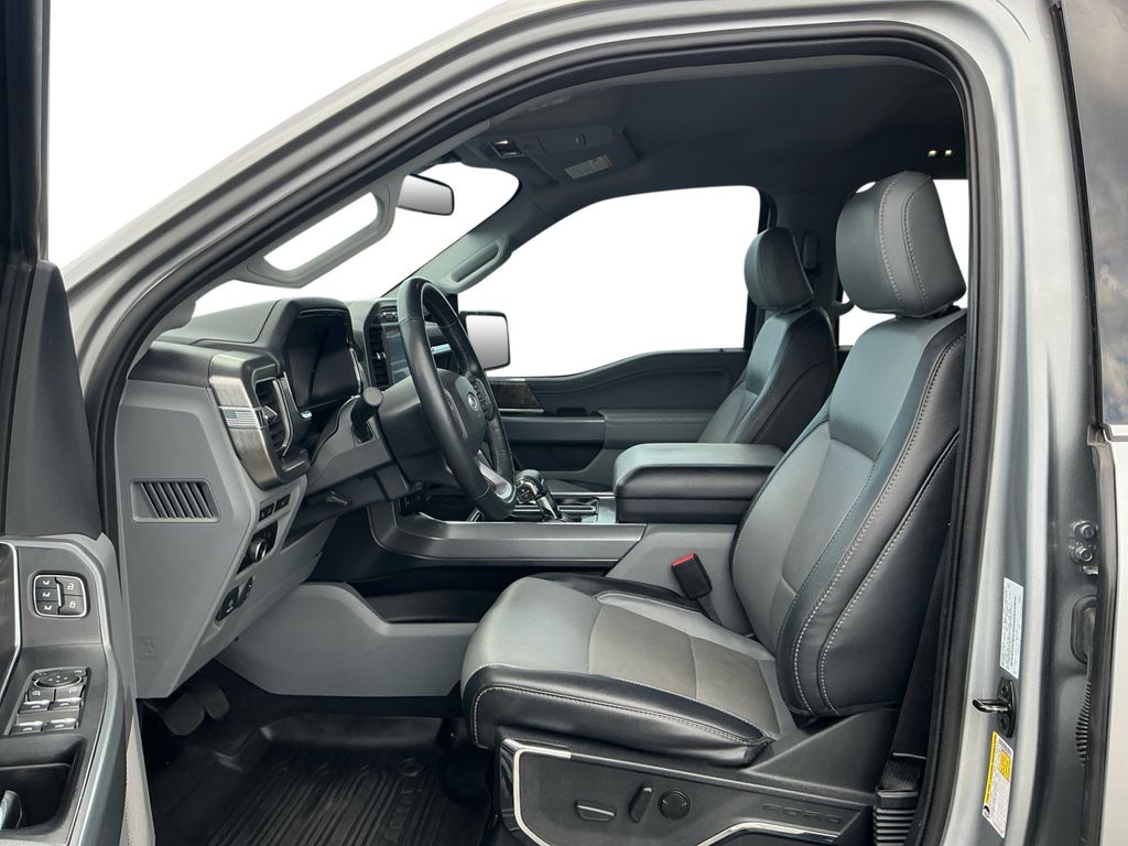 2023 Ford F-150 Lariat Iconic Silver Metallic Lariat 4WD 10-Speed Automatic 5.0L V8 4WD, 360 Degree Camera, 4-Wheel Disc Brakes, 8 Speakers, ABS brakes, Adjustable pedals, Air Conditioning, Alloy wheels, AM/FM radio: SiriusXM with 360L, Auto High-beam Headlights, Auto-dimming door mirrors, Auto-dimming Rear-View mirror, Automatic temperature control, Bed Divider, BoxLink, Brake assist, Bumpers: chrome, Center High-Mounted Stop Lamp CHMSL Camera Removal, Chrome wheels, Class IV Trailer Hitch Receiver, Compass, Delay-off headlights, Driver door bin, Driver vanity mirror, Dual front impact airbags, Dual front side impact airbags, Electronic Stability Control, Emergency communication system: SYNC 4 911 Assist, Equipment Group 501A Standard, Extended Range 36 Gallon Fuel Tank, Exterior Parking Camera Rear, Front anti-roll bar, Front Bucket Seats, Front Center Armrest, Front dual zone A/C, Front fog lights, Front License Plate Bracket, Front reading lights, Front wheel independent suspension, Fully automatic headlights, FX4 Off-Road Package, Garage door transmitter, Heated door mirrors, Heated front seats, Heated steering wheel, Illuminated entry, Inclination/Intrusion Sensor Removal, Integrated Trailer Brake Controller, Leather-Trimmed Bucket Seats, LED Sideview Mirror Spotlights, Low tire pressure warning, Max Trailer Tow Package, Memory seat, Occupant sensing airbag, Outside temperature display, Overhead airbag, Overhead console, Panic alarm, Passenger door bin, Passenger vanity mirror, Pedal memory, Power door mirrors, Power driver seat, Power passenger seat, Power steering, Power windows, Pro Trailer Backup Assist & Pro Trailer Hitch Assist, Radio data system, Radio: B&O Sound System by Bang & Olufsen, Rear reading lights, Rear seat center armrest, Rear step bumper, Rear window defroster, Remote keyless entry, Security system, Speed control, Speed-sensing steering, Split folding rear seat, Steering Wheel Heat Removal (DISC), Steering wheel mounted audio controls, SYNC 4 w/Enhanced Voice Recognition, Tachometer, Telescoping steering wheel, Tilt steering wheel, Traction control, Tray Style Floor Liner (47W), Trip computer, Turn signal indicator mirrors, Variably intermittent wipers, Ventilated front seats, Voltmeter, Wheels: 18" Chrome-Like PVD, Wheels: 20" Chrome-Like PVD, Wireless Charging Pad, 4WD.