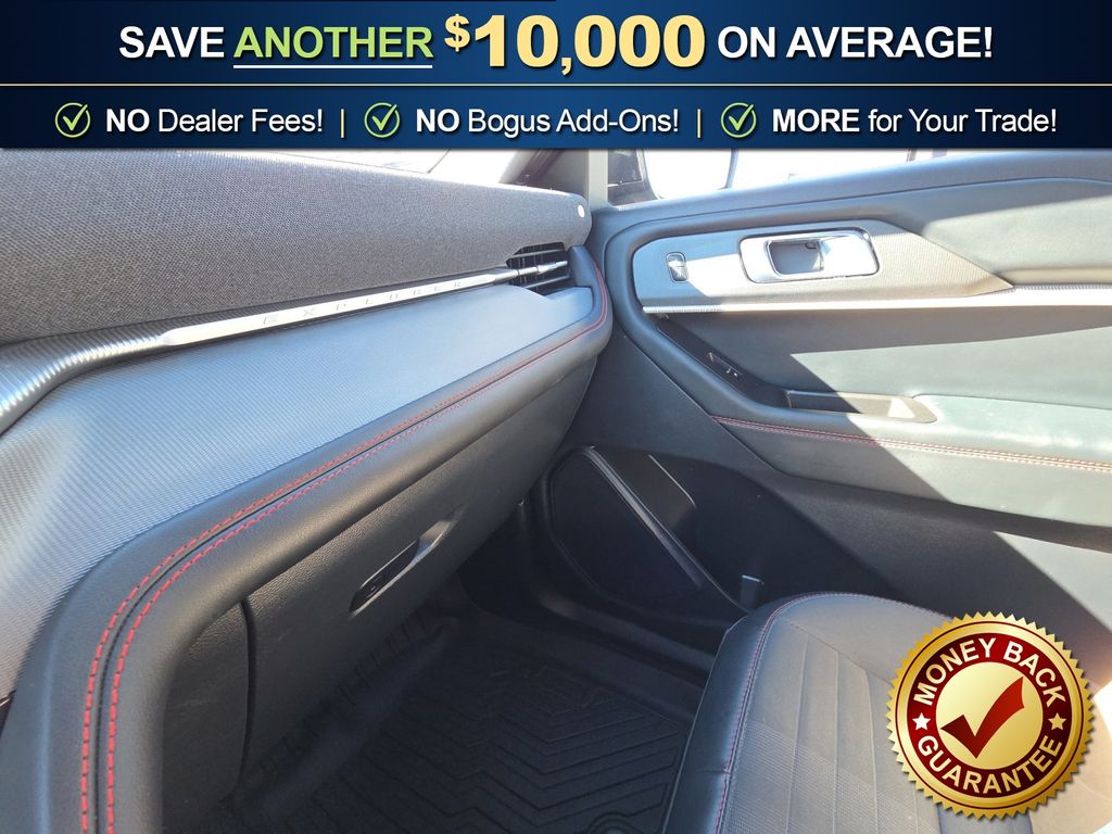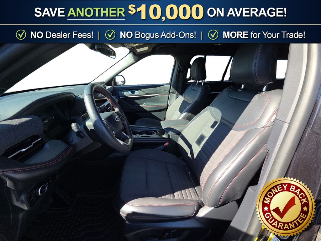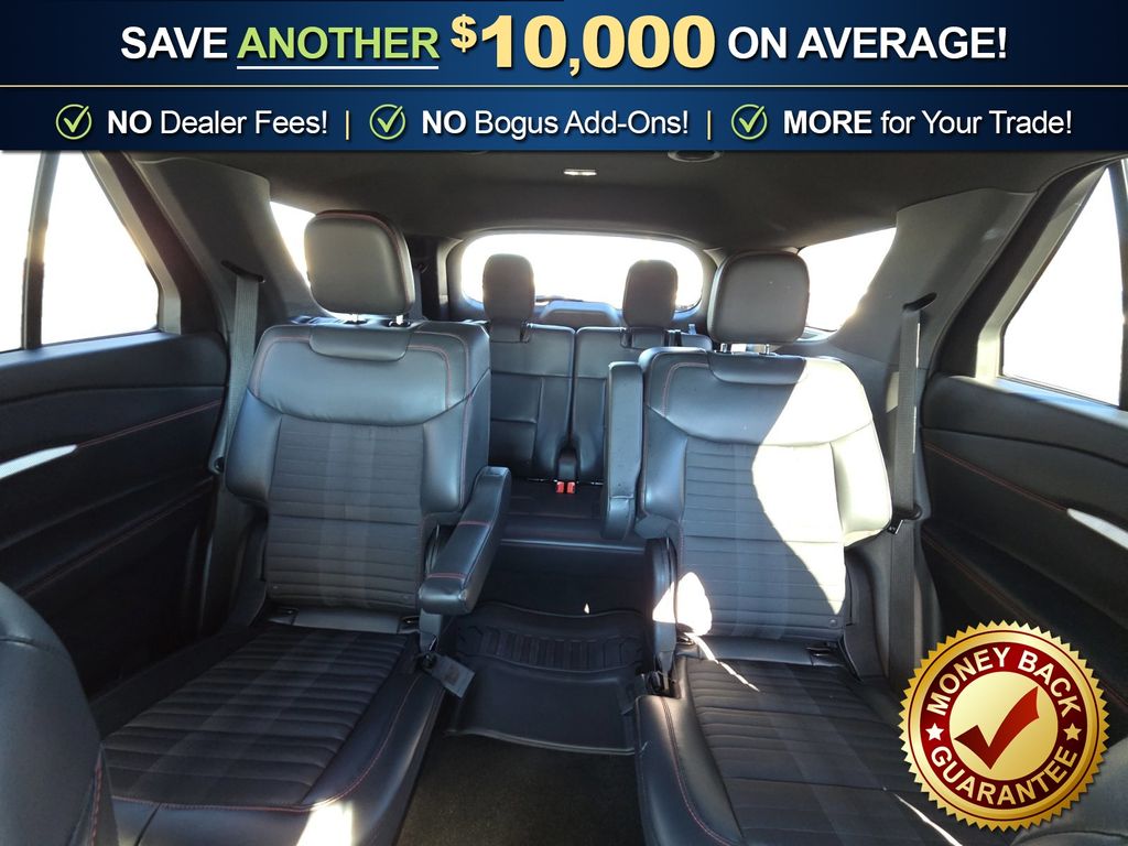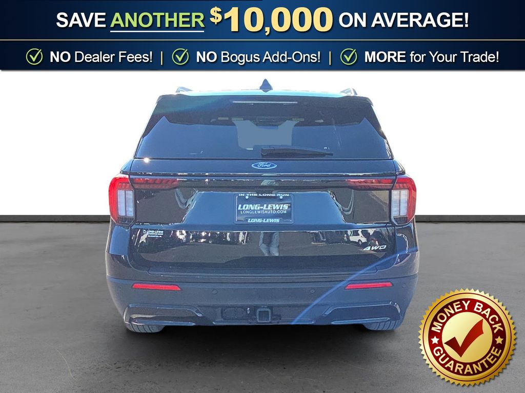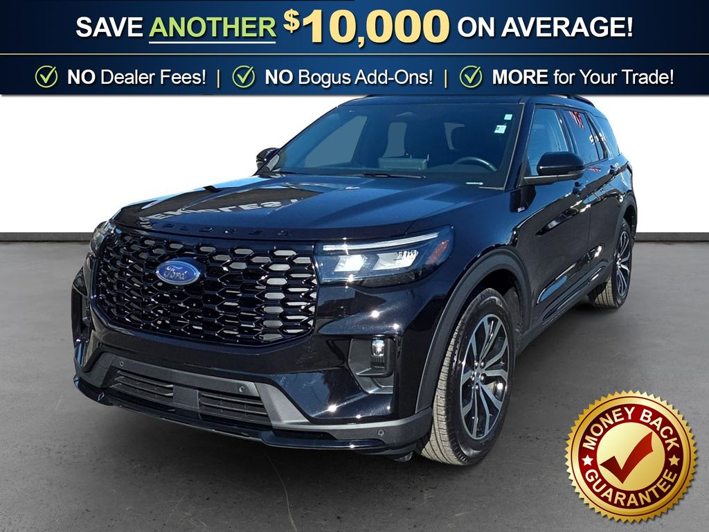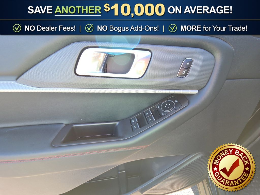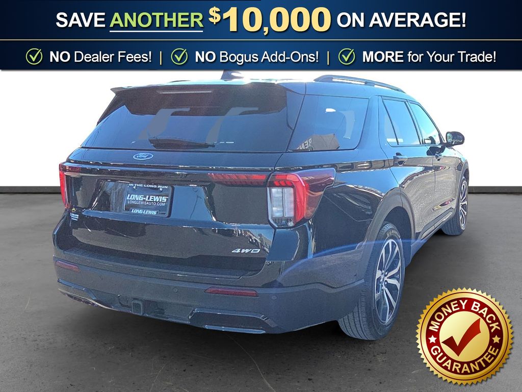 4WD, 10 Speakers, 2nd Row Captain's Chairs w/E-Z Entry & Armrest, 3.58 Non-Limited Slip Rear Axle, 3rd row seats: bench, 4-Wheel Disc Brakes, ABS brakes, Air Conditioning, Alloy wheels, AM/FM radio: SiriusXM with 360L, Apple CarPlay/Android Auto, Auto High-beam Headlights, Automatic temperature control, Brake assist, Bumpers: body-color, Compass, Delay-off headlights, Driver door bin, Driver vanity mirror, Dual front impact airbags, Dual front side impact airbags, Electronic Stability Control, Emergency communication system: 911 Assist, Equipment Group 300A Standard Package, Exterior Parking Camera Rear, Four wheel independent suspension, Front anti-roll bar, Front Bucket Seats, Front Center Armrest, Front dual zone A/C, Front fog lights, Front License Plate Bracket, Front reading lights, Fully automatic headlights, Garage door transmitter, Heated door mirrors, Heated front seats, Heated steering wheel, Heated Unique Cloth Captain's Chairs, Illuminated entry, Internet access capable: FordPass Connect 5G, Knee airbag, Leather steering wheel, Low tire pressure warning, Navigation System, Occupant sensing airbag, Outside temperature display, Overhead airbag, Overhead console, Panic alarm, Passenger door bin, Passenger vanity mirror, Power door mirrors, Power driver seat, Power Liftgate, Power passenger seat, Power steering, Power windows, Radio: B&O Sound System by Bang & Olufsen, Rear air conditioning, Rear anti-roll bar, Rear reading lights, Rear window defroster, Rear window wiper, Remote keyless entry, Security system, Speed control, Speed-sensing steering, Speed-Sensitive Wipers, Split folding rear seat, Spoiler, Steering wheel mounted audio controls, Tachometer, Telescoping steering wheel, Tilt steering wheel, Traction control, Trip computer, Variably intermittent wipers, Wheels: 20" Ebony-Painted Machined Aluminum, 4WD. 2025 Ford Explorer ST-Line