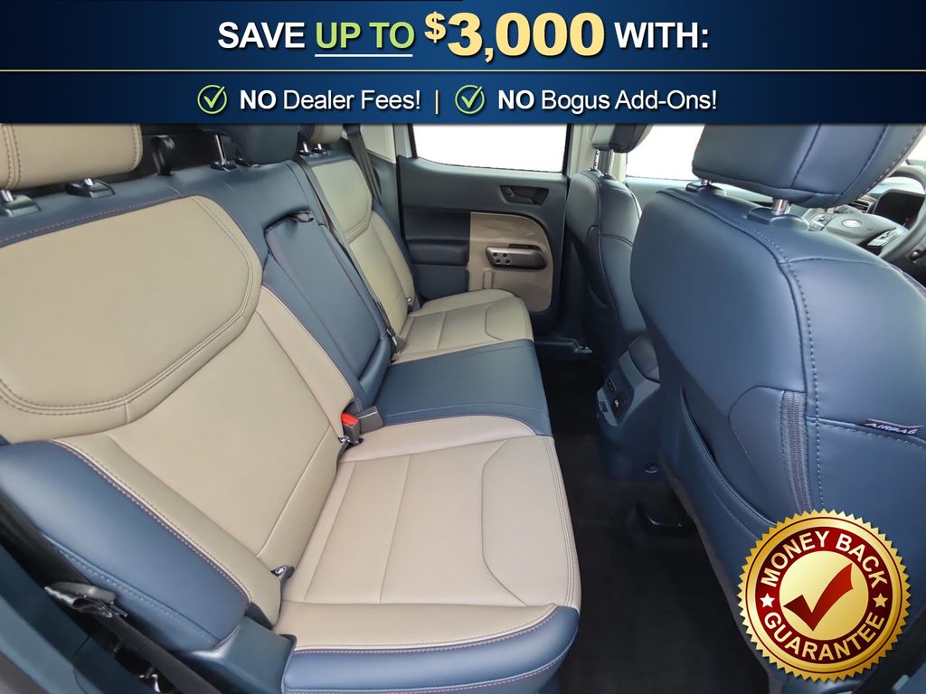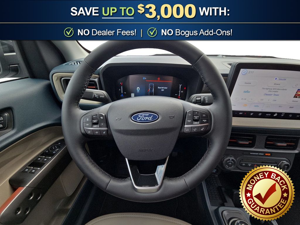 2.91 Axle Ratio, 4-Wheel Disc Brakes, 4K Tow Package, 8 Speakers, ABS brakes, ActiveX Trimmed Heated Front Bucket Seats, Air Conditioning, Alloy wheels, AM/FM radio: SiriusXM with 360L, Apple CarPlay/Android Auto, Auto High-beam Headlights, Automatic temperature control, Brake assist, Bumpers: body-color, Compass, Delay-off headlights, Driver door bin, Driver vanity mirror, Dual front impact airbags, Dual front side impact airbags, Electronic Stability Control, Emergency communication system: SYNC 4 911 Assist, Equipment Group 502A, Exterior Parking Camera Rear, Four wheel independent suspension, Front anti-roll bar, Front Bucket Seats, Front Center Armrest, Front dual zone A/C, Front reading lights, Fully automatic headlights, Heated door mirrors, Heated front seats, Heated steering wheel, Illuminated entry, Internet access capable: FordPass Connect 5G, Knee airbag, Low tire pressure warning, Navigation system: Connected Navigation, Occupant sensing airbag, Outside temperature display, Overhead airbag, Overhead console, Panic alarm, Passenger door bin, Passenger vanity mirror, Power door mirrors, Power driver seat, Power steering, Power windows, Radio data system, Radio: B&O Sound System by Bang & Olufsen, Rear anti-roll bar, Rear seat center armrest, Rear step bumper, Remote keyless entry, Security system, SiriusXM w/360L, Speed control, Speed-sensing steering, Steering wheel mounted audio controls, SYNC 4 w/Enhanced Voice Recognition, Telescoping steering wheel, Tilt steering wheel, Traction control, Trailer Brake Controller, Trailer Hitch (Class III) 2" Receiver, Transmission Oil Cooler, Trip computer, Upgraded Cooling Fan, Wheels: 19" Machined Painted Aluminum. 2025 Ford Maverick Lariat