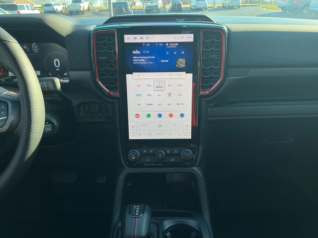 2025 Ford Ranger Raptor Carbonized Gray Metallic Raptor 4WD 10-Speed Automatic 3.0L EcoBoost V6 4WD, 10 Speakers, 4-Wheel Disc Brakes, 4.27 Axle Ratio, ABS brakes, Air Conditioning, Alloy wheels, AM/FM radio: SiriusXM, Auto High-beam Headlights, Auto-dimming Rear-View mirror, Automatic temperature control, Brake assist, Compass, Delay-off headlights, Driver door bin, Driver vanity mirror, Dual front impact airbags, Dual front side impact airbags, Electronic Stability Control, Emergency communication system: SYNC 4 911 Assist, Equipment Group 800A Standard, Front anti-roll bar, Front Bucket Seats, Front Center Armrest, Front dual zone A/C, Front fog lights, Front License Plate Bracket, Front reading lights, Front wheel independent suspension, Fully automatic headlights, Garage door transmitter, Heated door mirrors, Heated front seats, Heated steering wheel, Illuminated entry, Internet access capable: FordPass Connect 4G, Leather Shift Knob, Leather steering wheel, Leather-Trimmed Front Heated Bucket Seats, Low tire pressure warning, Memory seat, Navigation system: Connected Navigation, Occupant sensing airbag, Outside temperature display, Overhead airbag, Overhead console, Panic alarm, Passenger door bin, Passenger vanity mirror, Power door mirrors, Power driver seat, Power passenger seat, Power steering, Power windows, Radio: B&O Sound System by Bang & Olufsen, Rain sensing wipers, Rear reading lights, Rear seat center armrest, Rear step bumper, Rear window defroster, Remote keyless entry, Security system, SiriusXM Satellite Radio, Speed control, Speed-sensing steering, Steering wheel mounted audio controls, SYNC 4A, Telescoping steering wheel, Tilt steering wheel, Traction control, Trip computer, Turn signal indicator mirrors, Variably intermittent wipers, Voltmeter, Wheels: 17" Gray-Painted Aluminum, 4WD.