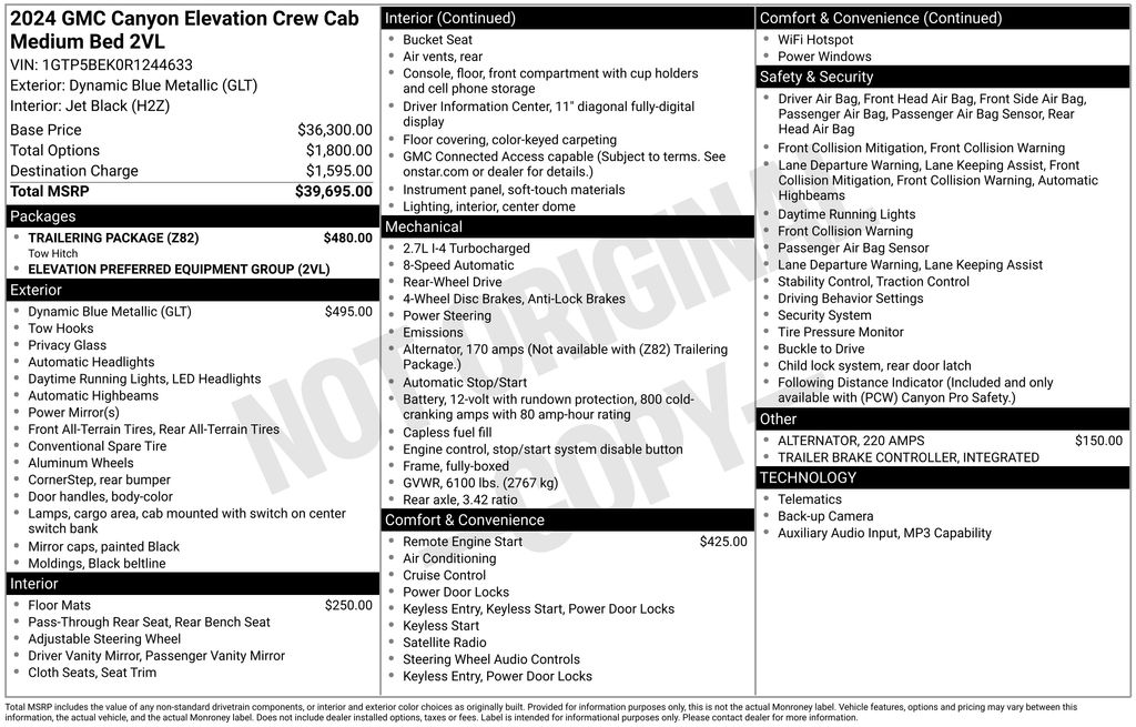 2024 GMC Canyon Elevation Truck I4 Turbocharged DOHC 16V LEV3-SULEV30 310hp