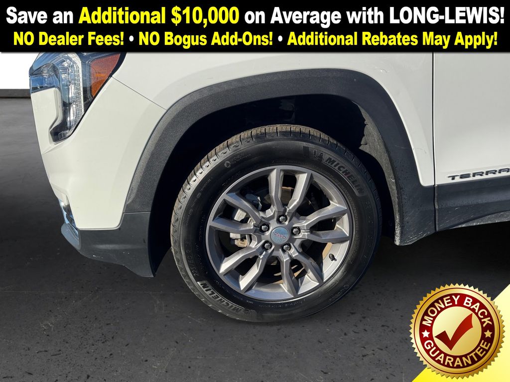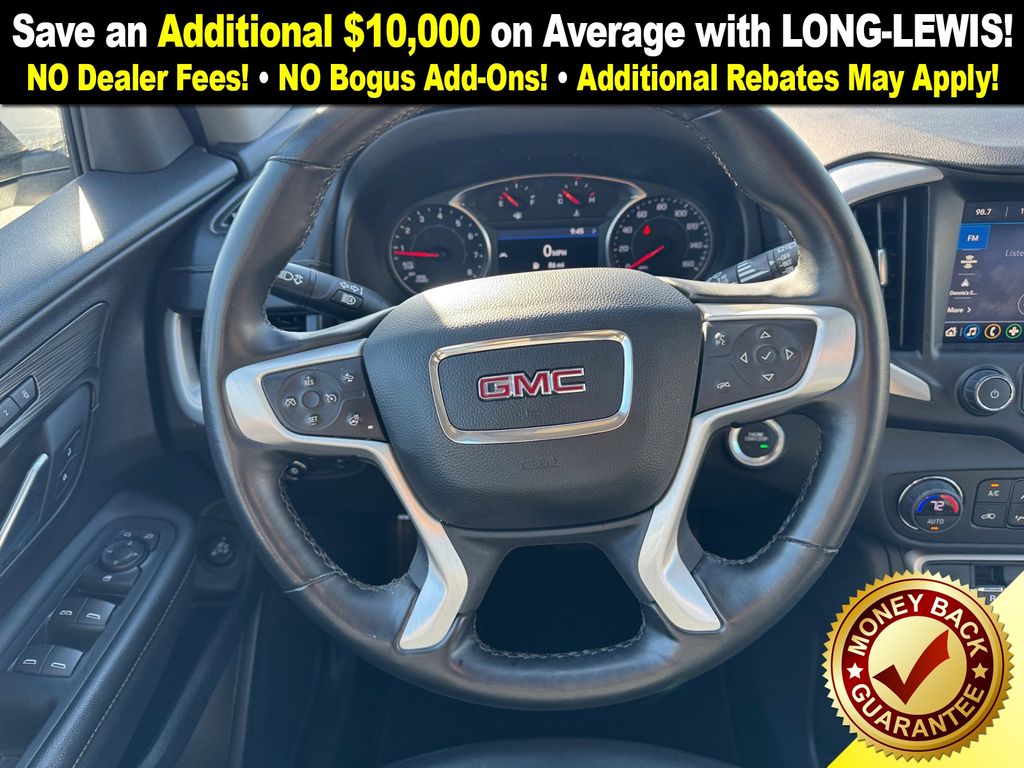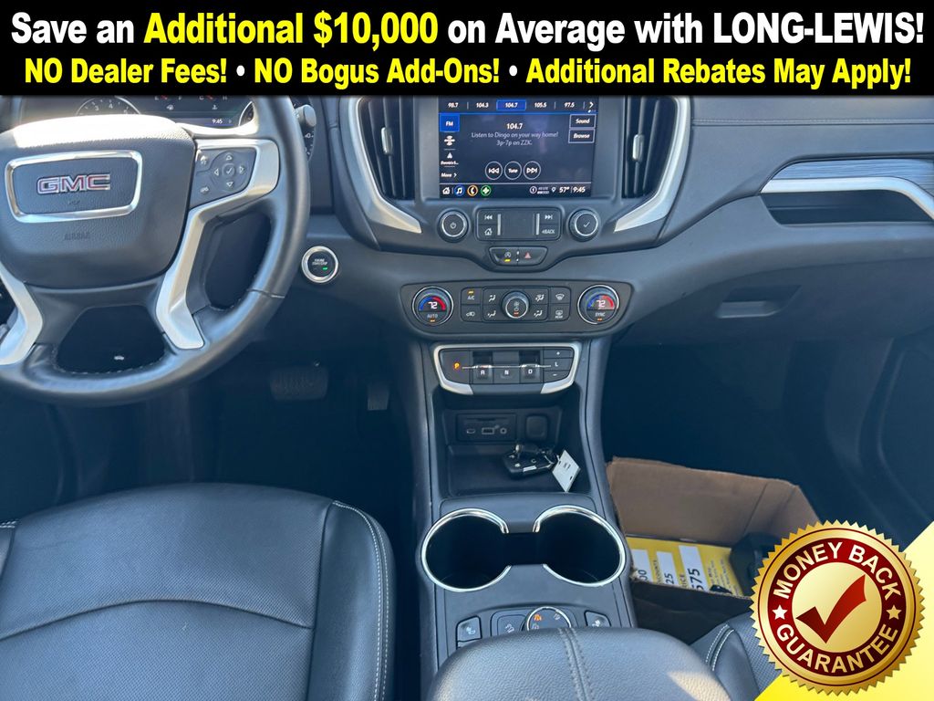 AWD, 2 USB Data Ports, 2 USB Data Ports w/SD Card Reader, 3.47 Final Drive Axle Ratio, 4-Wheel Disc Brakes, 6 Speakers, 6-Speaker Audio System Feature, 6-Way Power Front Passenger Seat, 8-Way Power Driver Seat Adjuster, ABS brakes, Air Conditioning, Alloy wheels, AM/FM radio: SiriusXM, Auto High-beam Headlights, Auto-dimming Rear-View mirror, Automatic temperature control, Bluetooth® For Phone, Brake assist, Bumpers: body-color, Compass, Delay-off headlights, Driver & Front Passenger Heated Seats, Driver door bin, Driver vanity mirror, Dual front impact airbags, Dual front side impact airbags, Electronic Stability Control, Emergency communication system: OnStar and GMC connected services capable, Four wheel independent suspension, Front anti-roll bar, Front Bucket Seats, Front Center Armrest, Front dual zone A/C, Front fog lights, Front Passenger 2-Way Power Lumbar, Front reading lights, Fully automatic headlights, Garage door transmitter, Heated door mirrors, Heated front seats, Heated steering wheel, Illuminated entry, Low tire pressure warning, Memory seat, Occupant sensing airbag, Outside temperature display, Overhead airbag, Overhead console, Panic alarm, Passenger door bin, Passenger vanity mirror, Perforated Leather-Appointed Seat Trim, Power door mirrors, Power Driver Lumbar Control, Power driver seat, Power Liftgate, Power passenger seat, Power steering, Power windows, Preferred Equipment Group 4SA, Radio data system, Radio: GMC Infotainment Audio System w/8" Display, Rear anti-roll bar, Rear seat center armrest, Rear window defroster, Rear window wiper, Remote keyless entry, Roof rack: rails only, Security system, SiriusXM, Speed control, Speed-sensing steering, Split folding rear seat, Spoiler, Steering wheel mounted audio controls, Tachometer, Telescoping steering wheel, Tilt steering wheel, Traction control, Trip computer, Turn signal indicator mirrors, Variably intermittent wipers, Wheels: 18" x 7" Silver Painted Aluminum, Wireless Apple CarPlay/Wireless Android Auto, AWD. 2024 GMC Terrain SLT