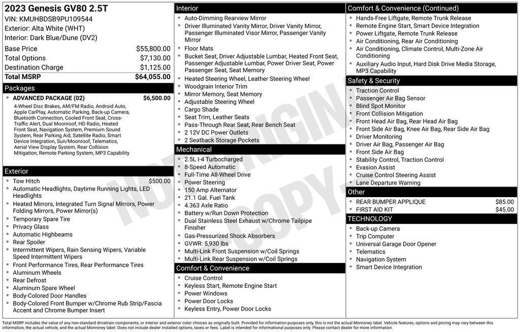 The 2023 Genesis GV80 Advanced AWD delivers luxury, technology, and performance typically reserved for far higher-priced SUVs now available for less. With premium comfort, advanced safety systems, and a striking design, its the ultimate affordable luxury SUV.