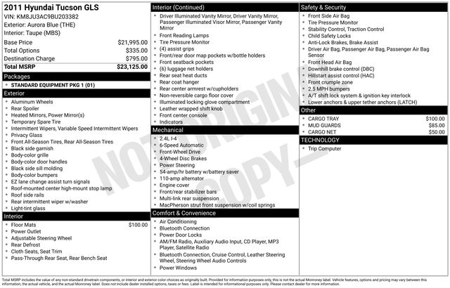 2011 Hyundai Tucson GLS SUV I4 MPI DOHC CVVT 16V Theta 2