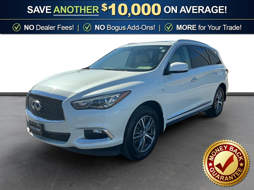 2017 INFINITI QX60 Base Majestic White FWD Sport-Tuned CVT 3.5L V6 2-Way Driver's Seat Power Lumbar Support, 3rd row seats: bench, 4-Wheel Disc Brakes, 5.17 Axle Ratio, 6 Speakers, ABS brakes, Air Conditioning, Alloy wheels, AM/FM radio: SiriusXM, AM/FM/CD/MP3 Audio System, Auto-dimming Rear-View mirror, Automatic temperature control, Bodyside moldings, Brake assist, Bumpers: body-color, CD player, Delay-off headlights, Driver door bin, Driver vanity mirror, Dual front impact airbags, Dual front side impact airbags, Dual Occupant Memory System, Electronic Stability Control, Enhanced Intelligent Key Memory, Entry & Exit Assist, Four wheel independent suspension, Front anti-roll bar, Front Bucket Seats, Front Center Armrest w/Storage, Front dual zone A/C, Front fog lights, Front reading lights, Fully automatic headlights, Garage door transmitter, Heated door mirrors, Heated Front Seats, Heated front seats, Heated Steering Wheel, High intensity discharge headlights: Bi-Xenon, Illuminated entry, Leather Shift Knob, Leather steering wheel, Leather-Appointed Seats, Low tire pressure warning, Occupant sensing airbag, Outside Mirrors w/Reverse Tilt-Down Feature, Outside temperature display, Overhead airbag, Overhead console, Panic alarm, Passenger door bin, Passenger vanity mirror, Power door mirrors, Power driver seat, Power Liftgate, Power moonroof, Power passenger seat, Power steering, Power windows, Premium Package, Radio data system, Radio: AM/FM/CD/DVD w/MP3 Playback Capability, Rear air conditioning, Rear anti-roll bar, Rear reading lights, Rear seat center armrest, Rear window defroster, Rear window wiper, Reclining 3rd row seat, Remote Engine Start, Remote keyless entry, Security system, Speed control, Speed-sensing steering, Speed-Sensitive Wipers, Splash Guards (Color-Matched Set of 4), Split folding rear seat, Spoiler, Steering wheel mounted audio controls, Tachometer, Telescoping steering wheel, Tilt steering wheel, Traction control, Trip computer, Turn signal indicator mirrors, Variably intermittent wipers, Wheels: 18" Triple 5-Spoke Aluminum-Alloy.