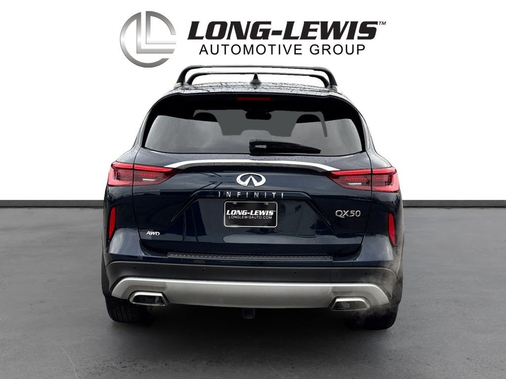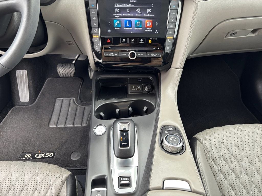 2024 INFINITI QX50 Autograph Hermosa Blue Autograph AWD CVT I4 16 Speakers, 4-Wheel Disc Brakes, 5.846 Axle Ratio, ABS brakes, Air Conditioning, Alloy wheels, AM/FM radio: SiriusXM, Auto High-beam Headlights, Auto tilt-away steering wheel, Auto-dimming door mirrors, Auto-dimming Rear-View mirror, Automatic temperature control, Brake assist, Bumpers: body-color, Cargo Package, CD player, Climate Controlled Front Bucket Seats, Cross Bars, Delay-off headlights, Driver door bin, Driver vanity mirror, Dual Camera Drive Recorder Dash Cam, Dual front impact airbags, Dual front side impact airbags, Electronic Stability Control, Emergency communication system: INFINITI InTouch (1-year complimentary trial), Exterior Parking Camera Rear, Floor Mats, Four wheel independent suspension, Front anti-roll bar, Front Bucket Seats, Front Center Armrest, Front dual zone A/C, Front fog lights, Front reading lights, Garage door transmitter: HomeLink, Genuine wood door panel insert, Heads-Up Display, Heated door mirrors, Heated front seats, Heated rear seats, Heated steering wheel, Illuminated entry, Illuminated Kick Plates, Knee airbag, Leather Shift Knob, Leather steering wheel, Literature Kit, Low tire pressure warning, Memory seat, Navigation system: INFINITI InTouch Navigation, Occupant sensing airbag, Outside temperature display, Overhead airbag, Overhead console, Panic alarm, Passenger door bin, Passenger vanity mirror, Power door mirrors, Power driver seat, Power Liftgate, Power moonroof, Power passenger seat, Power steering, Power windows, Quilted Semi-Aniline Leather-Appointed Seat Trim, Radio data system, Radio: Bose Performance Series Audio System, Rain sensing wipers, Rear air conditioning, Rear anti-roll bar, Rear Bumper Protector, Rear reading lights, Rear seat center armrest, Rear side impact airbag, Rear window defroster, Rear window wiper, Remote keyless entry, Security system, Speed control, Speed-sensing steering, Speed-Sensitive Wipers, Splash Guards (Set of 4), Split folding rear seat, Spoiler, Steering wheel memory, Steering wheel mounted audio controls, Tachometer, Telescoping steering wheel, Tilt steering wheel, Tow Hitch Package w/Motion Activated Liftgate, Traction control, Trip computer, Turn signal indicator mirrors, Variably intermittent wipers, Ventilated front seats, Welcome Lighting w/Logo, Wheels: 20" Dark Painted Aluminum Alloy, Wheels: 20" Silver Painted & Machine Finished.