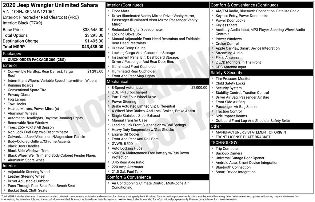 2020 Jeep Wrangler Unlimited Sahara SUV I4 DOHC