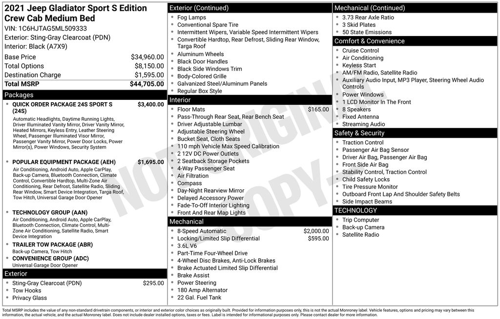 2021 Jeep Gladiator Sport Truck V6 24V VVT