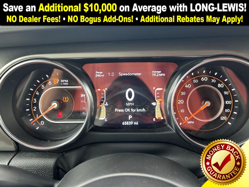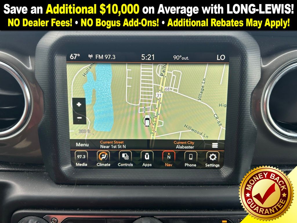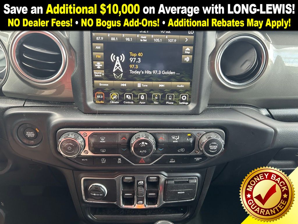 With premium features like the 18" Granite Crystal Aluminum Wheels, advanced 8.4" Uconnect Display with Navigation, Back Up Camera, and Apple CarPlay/Android Auto, youll enjoy both capability and convenience. The Black 3-Piece Hard Top and Rear Sliding Window make it easy to adapt to every adventure.