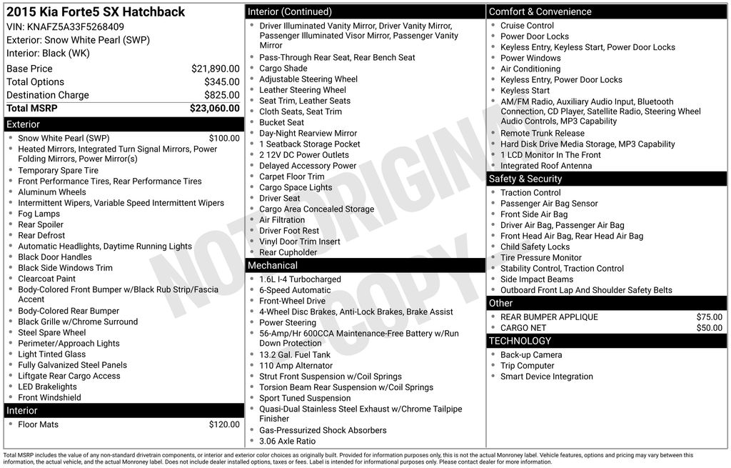 2015 Kia Forte5 SX Hatchback 4-Cylinder DGI DOHC
