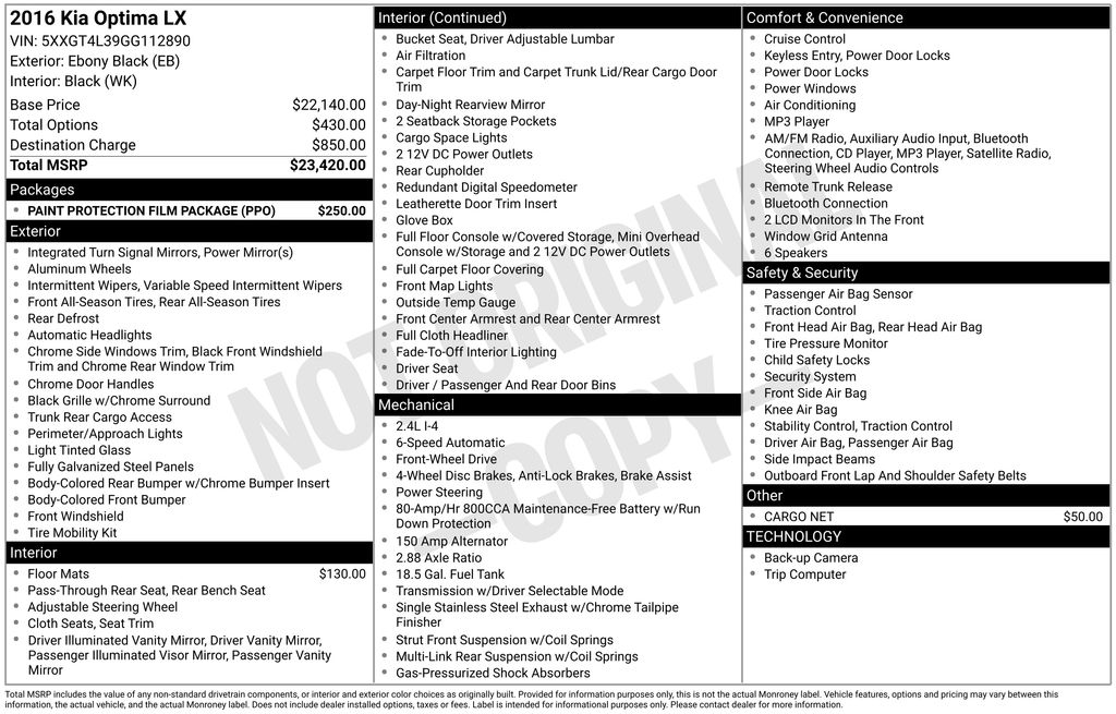 2016 Kia Optima LX Sedan I4 DGI DOHC