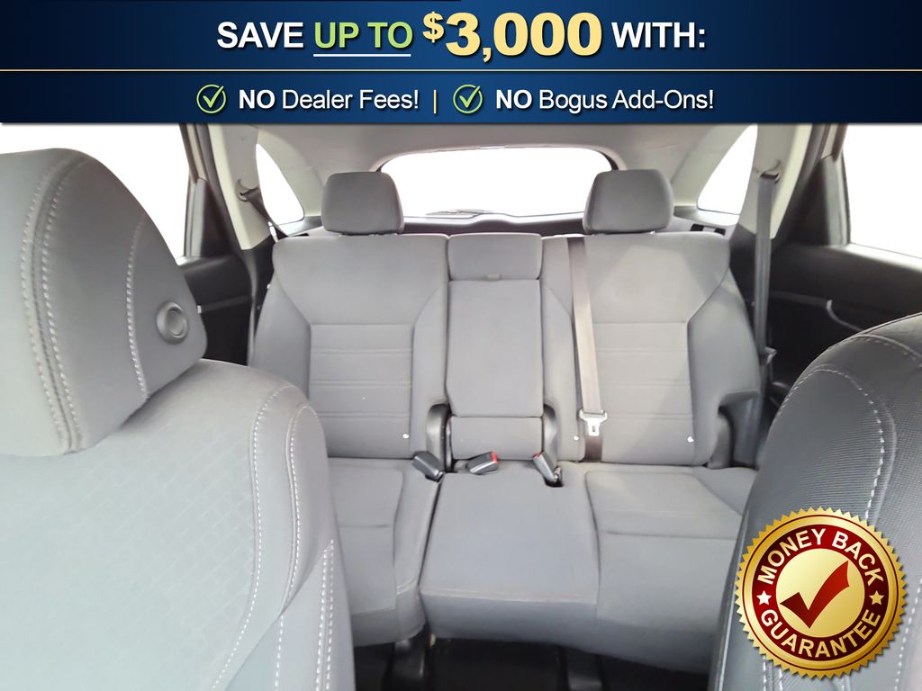 3.51 Axle Ratio, 4-Wheel Disc Brakes, 6 Speakers, ABS brakes, Air Conditioning, Alloy wheels, AM/FM radio: SiriusXM, Anti-whiplash front head restraints, Auto Headlamp Control, Auto-Dimming Rear-View Mirror, Brake assist, Bumpers: body-color, Cargo Net, Carpet Floor Mats (5 Seat), CD player, Delay-off headlights, Driver door bin, Driver vanity mirror, Dual front impact airbags, Dual front side impact airbags, Dual Zone Automatic HVAC, Electronic Stability Control, Exterior Parking Camera Rear, Four wheel independent suspension, Front anti-roll bar, Front Bucket Seats, Front Center Armrest, Front reading lights, Heated door mirrors, Heated Front Bucket Seats, Illuminated entry, Leather Wrapped Steering Wheel & Gear Shift Knob, Low tire pressure warning, LX Convenience Package, Occupant sensing airbag, Outside temperature display, Overhead airbag, Overhead console, Panic alarm, Passenger door bin, Passenger vanity mirror, Power door mirrors, Power steering, Power windows, Radio: AM/FM/CD/MP3/SiriusXM, Radio: AM/FM/MP3/SiriusXM, Rear anti-roll bar, Rear Backup Park Assist, Rear seat center armrest, Rear window defroster, Rear window wiper, Remote keyless entry, Roof rack: rails only, Security system, Shark Fin Antenna, Speed control, Speed-sensing steering, Split folding rear seat, Spoiler, Steering wheel mounted audio controls, Tachometer, Telescoping steering wheel, Tilt steering wheel, Traction control, Trip computer, Turn signal indicator mirrors, Variably intermittent wipers, Wheels: 17" x 7.0 Alloy, YES Essentials Cloth Seat Trim. 2017 Kia Sorento LX