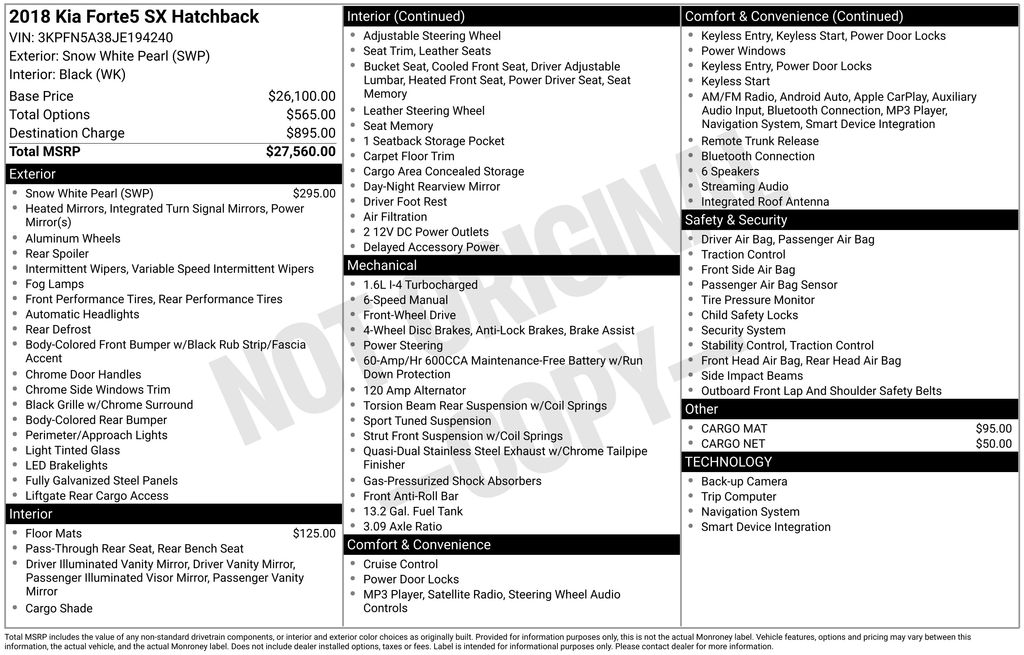 2018 Kia Forte5 SX Hatchback I4 DOHC
