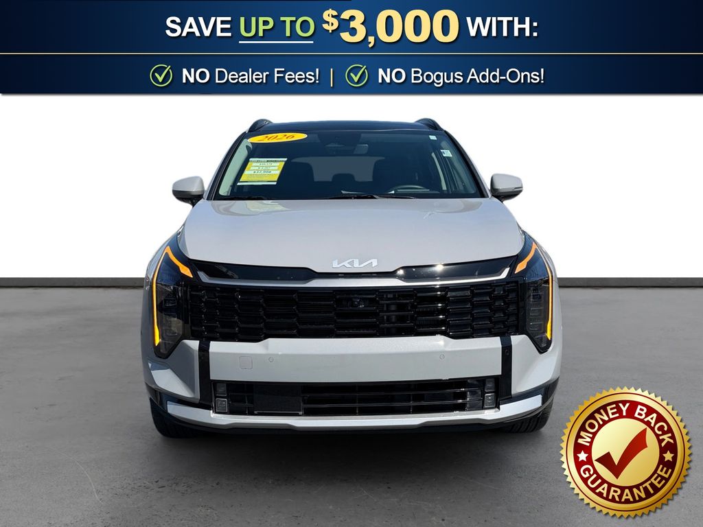1.6L Turbo GDI 4-Cylinder, 4-Wheel Disc Brakes, 8 Speakers, ABS brakes, Air Conditioning, Alloy wheels, AM/FM radio: SiriusXM, Auto High-beam Headlights, Auto-Dimming Mirror with HomeLink, Automatic temperature control, Brake assist, Bumpers: body-color, Carpeted Floor Mats, Compass, Delay-off headlights, Driver door bin, Driver vanity mirror, Dual front impact airbags, Dual front side impact airbags, Electronic Stability Control, Emergency communication system, Four wheel independent suspension, Front anti-roll bar, Front Bucket Seats, Front Center Armrest, Front dual zone A/C, Front fog lights, Front reading lights, Fully automatic headlights, harman/kardon® Speakers, Heated and Ventilated Front Bucket Seats, Heated door mirrors, Heated front seats, Heated steering wheel, Illuminated entry, Leather steering wheel, Low tire pressure warning, Memory seat, Navigation System, Occupant sensing airbag, Outside temperature display, Overhead airbag, Overhead console, Panic alarm, Passenger door bin, Passenger vanity mirror, Power door mirrors, Power driver seat, Power Liftgate, Power moonroof, Power passenger seat, Power steering, Power windows, Radio: AM/FM/HD Premium Audio System, Rain sensing wipers, Rear anti-roll bar, Rear reading lights, Rear seat center armrest, Rear side impact airbag, Rear window defroster, Rear window wiper, Remote keyless entry, Security system, Speed control, Speed-sensing steering, Split folding rear seat, Spoiler, Steering wheel mounted audio controls, Syntex Premium Leatherette Seat Trim, Tachometer, Telescoping steering wheel, Tilt steering wheel, Traction control, Trip computer, Turn signal indicator mirrors, Variably intermittent wipers, Ventilated front seats, Wheels: 19" x 7.5J Alloy, 1.6L Turbo GDI 4-Cylinder. 2026 Kia Sportage Hybrid SX-Prestige