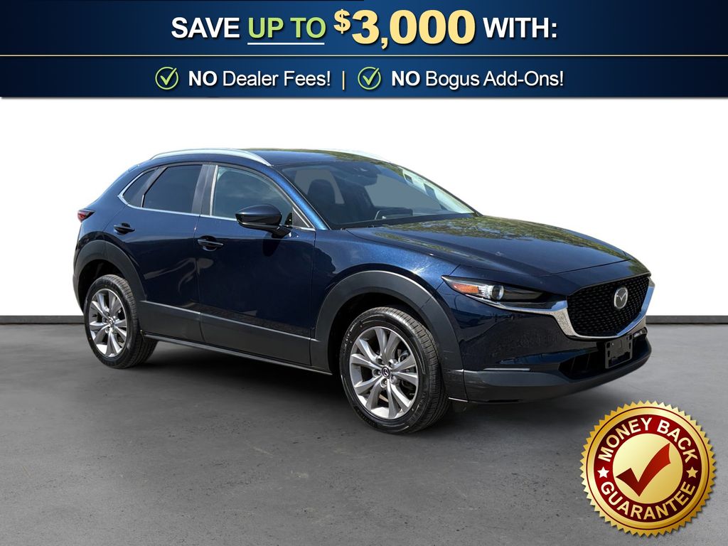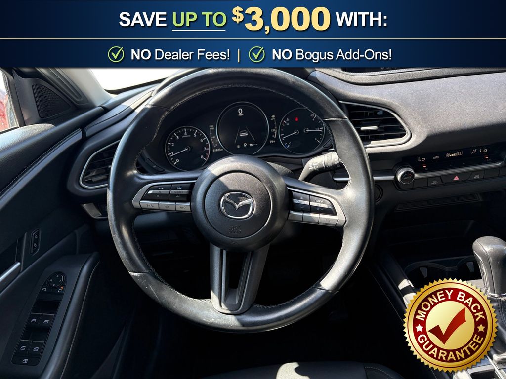 4-Wheel Disc Brakes, 4.095 Axle Ratio, 8 Speakers, ABS brakes, Air Conditioning, Alloy wheels, AM/FM radio, AppLink/Apple CarPlay and Android Auto, Auto High-beam Headlights, Automatic temperature control, Brake assist, Bumpers: body-color, Compass, Delay-off headlights, Driver door bin, Driver vanity mirror, Dual front impact airbags, Dual front side impact airbags, Electronic Stability Control, Emergency communication system: Mazda Connected Services (3-year complimentary trial included), Exterior Parking Camera Rear, Front anti-roll bar, Front Bucket Seats, Front Center Armrest, Front dual zone A/C, Front reading lights, Front wheel independent suspension, Fully automatic headlights, Illuminated entry, Knee airbag, Leather Shift Knob, Leather steering wheel, Leatherette Seat Trim, Low tire pressure warning, MAZDA CONNECT Infotainment System, Mazda Navigation System, Occupant sensing airbag, Outside temperature display, Overhead airbag, Panic alarm, Passenger door bin, Passenger vanity mirror, Power door mirrors, Power steering, Power windows, Radio data system, Radio: AM/FM/HD Audio System, Rain sensing wipers, Rear seat center armrest, Rear side impact airbag, Rear window defroster, Rear window wiper, Remote keyless entry, Speed control, Speed-sensing steering, Split folding rear seat, Spoiler, Steering wheel mounted audio controls, Tachometer, Telescoping steering wheel, Tilt steering wheel, Traction control, Trip computer, Turn signal indicator mirrors, Variably intermittent wipers, Wheels: 18" x 7J Aluminum Alloy. 2023 Mazda CX-30 2.5 S Select Package