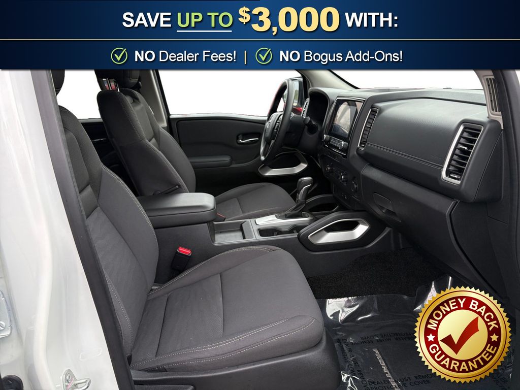 16" Alloy Wheels, 3.692 Axle Ratio, 4-Wheel Disc Brakes, 6 Speakers, ABS brakes, Air Conditioning, Alloy wheels, AM/FM radio: SiriusXM, Anti-whiplash front head restraints, Apple CarPlay/Android Auto, Brake assist, Bumpers: body-color, Carpeted Floor Mats, Delay-off headlights, Driver door bin, Driver vanity mirror, Dual front impact airbags, Dual front side impact airbags, Electronic Stability Control, Fender Premium Audio System w/10 Speakers, Front anti-roll bar, Front Bucket Seats, Front Center Armrest, Front reading lights, Front wheel independent suspension, Fully automatic headlights, Illuminated entry, Knee airbag, Low tire pressure warning, Occupant sensing airbag, Overhead airbag, Panic alarm, Passenger door bin, Passenger vanity mirror, Power door mirrors, Power driver seat, Power steering, Power windows, Premium Cloth Seat Trim, Radio data system, Radio: SXM/AM/FM/AUX/USB Audio System, Rear anti-roll bar, Rear seat center armrest, Rear side impact airbag, Rear step bumper, Remote keyless entry, Security system, Speed control, Speed-sensing steering, Split folding rear seat, Steering wheel mounted audio controls, Tachometer, Tilt steering wheel, Traction control, Trip computer, Variably intermittent wipers, Voltmeter. 2024 Nissan Frontier SV