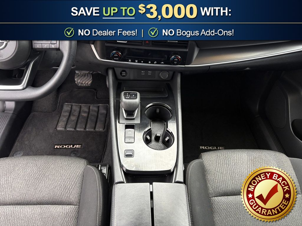 4-Wheel Disc Brakes, 5.676 Axle Ratio, 6 Speakers, ABS brakes, Air Conditioning, Alloy wheels, AM/FM radio: SiriusXM, Auto High-beam Headlights, Automatic temperature control, Brake assist, Bumpers: body-color, Cloth Seat Trim w/Patterned Inserts, Delay-off headlights, Driver door bin, Driver vanity mirror, Dual front impact airbags, Dual front side impact airbags, Electronic Stability Control, Emergency communication system: NissanConnect Services, First Aid Kit, Floor Mats w/1-Piece Cargo Area Protector, Four wheel independent suspension, Front anti-roll bar, Front Bucket Seats, Front Center Armrest, Front dual zone A/C, Front reading lights, Fully automatic headlights, Heated door mirrors, Illuminated entry, Knee airbag, Low tire pressure warning, NissanConnect featuring Apple CarPlay and Android Auto, Occupant sensing airbag, Outside temperature display, Overhead airbag, Overhead console, Panic alarm, Passenger door bin, Passenger vanity mirror, Power door mirrors, Power driver seat, Power Liftgate, Power steering, Power windows, Radio data system, Radio: AM/FM NissanConnect, Rear anti-roll bar, Rear Parking Sensors, Rear seat center armrest, Rear side impact airbag, Rear window defroster, Rear window wiper, Remote keyless entry, Speed control, Speed-Sensitive Wipers, Split folding rear seat, Spoiler, Steering wheel mounted audio controls, Tachometer, Telescoping steering wheel, Tilt steering wheel, Traction control, Trip computer, Variably intermittent wipers, Wheels: 18" Dark Painted Machine Finished Alloy. 2024 Nissan Rogue SV