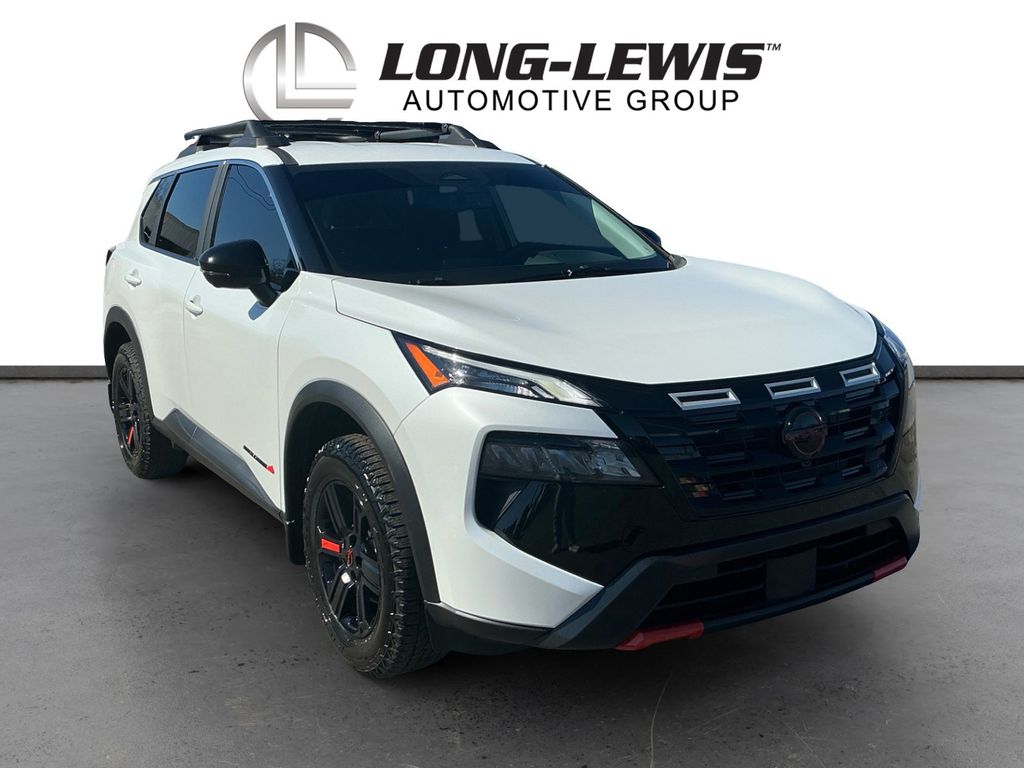 2025 Nissan Rogue Rock Creek Everest White Pearl Rock Creek AWD CVT with Xtronic 1.5L DOHC AWD, 4-Way Power Passenger Seat, 4-Wheel Disc Brakes, 6 Speakers, ABS brakes, Air Conditioning, Alloy wheels, AM/FM radio: SiriusXM, Android Auto and Apple CarPlay, Auto High-beam Headlights, Auto-Dimming Inside Mirror, Automatic temperature control, Brake assist, Delay-off headlights, Driver door bin, Driver vanity mirror, Dual front impact airbags, Dual front side impact airbags, Electronic Stability Control, Emergency communication system: NissanConnect Services, Four wheel independent suspension, Front anti-roll bar, Front Bucket Seats, Front Center Armrest, Front dual zone A/C, Front reading lights, Fully automatic headlights, Heated door mirrors, Heated Front Bucket Seats with 8-Way Power Driver Seat, Heated front seats, Illuminated entry, Interior LED Accent Lighting, Knee airbag, Leatherette and Ballistic Nylon Seating with Contrast Stich and Rock Creek Logo, Low tire pressure warning, Memory Driver Seat and Outside Mirrors, Motion-Activated Power Liftgate, Occupant sensing airbag, Outside temperature display, Overhead airbag, Overhead console, Panic alarm, Passenger door bin, Passenger vanity mirror, Power door mirrors, Power driver seat, Power Liftgate, Power steering, Power windows, Premium Paint, Radio data system, Radio: NissanConnect with 6 Speakers, Rear anti-roll bar, Rear seat center armrest, Rear side impact airbag, Rear window defroster, Rear window wiper, Remote keyless entry, Reverse Tilt-Down Outside Mirrors with Integrated Turn Signals, Rock Creek All-Season 1-Piece Cargo Area Protector with Floor Liners, Rock Creek Premium Package, Roof rack, Speed control, Speed-sensing steering, Speed-Sensitive Wipers, Split folding rear seat, Spoiler, Steering wheel mounted audio controls, Tachometer, Telescoping steering wheel, Tilt steering wheel, Traction control, Trip computer, Variably intermittent wipers, Wheels: 17" Dark Painted Alloy, Wireless Charging Pad, AWD.