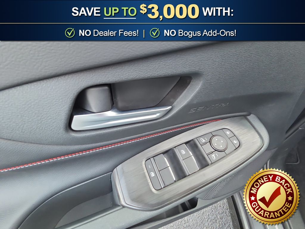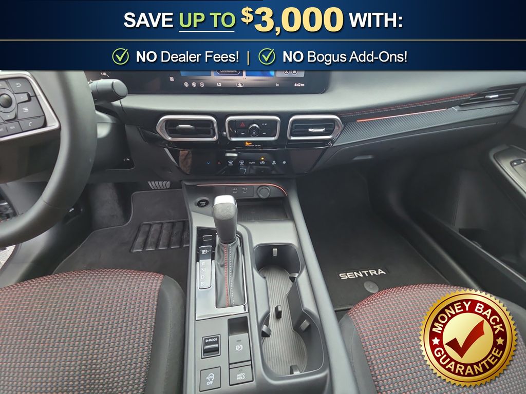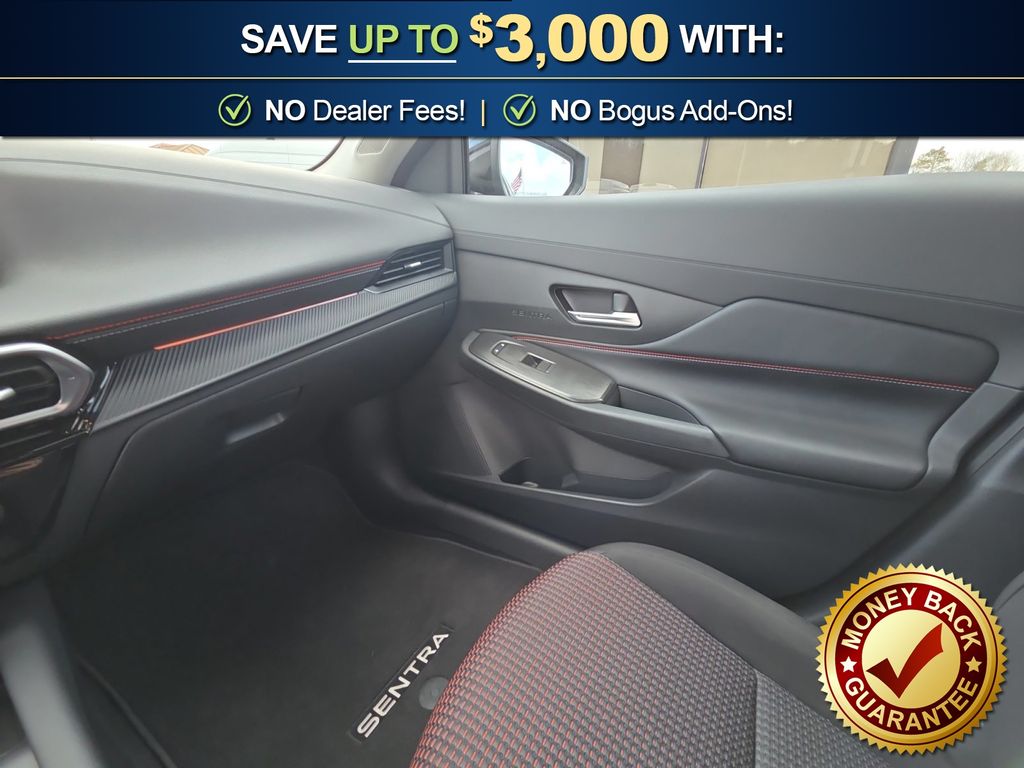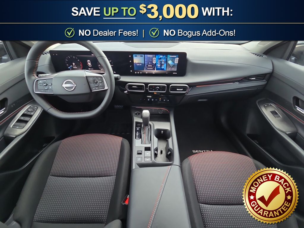CVT with Xtronic, Sport Cloth, 18" Machined Alloy Wheels, 4-Wheel Disc Brakes, 6 Speakers, ABS brakes, Air Conditioning, Alloy wheels, AM/FM radio: Sirius, Auto High-beam Headlights, Automatic temperature control, Brake assist, Bumpers: body-color, Delay-off headlights, Driver door bin, Driver vanity mirror, Dual front impact airbags, Dual front side impact airbags, Electronic Stability Control, Emergency communication system: NissanConnect Services, Floor Mat Package, Four wheel independent suspension, Front anti-roll bar, Front Bucket Seats, Front Center Armrest, Front reading lights, Fully automatic headlights, Garage door transmitter, Heated door mirrors, Illuminated entry, Knee airbag, Leather steering wheel, Low tire pressure warning, Occupant sensing airbag, Outside temperature display, Overhead airbag, Overhead console, Panic alarm, Passenger door bin, Passenger vanity mirror, Power door mirrors, Power steering, Power windows, Radio data system, Radio: AM/FM with RDS/MP3, Rear anti-roll bar, Rear seat center armrest, Rear side impact airbag, Rear window defroster, Remote keyless entry, Security system, Speed control, Speed-sensing steering, Split folding rear seat, Spoiler, Sport Cloth Seat Trim, Steering wheel mounted audio controls, Tachometer, Telescoping steering wheel, Tilt steering wheel, Traction control, Trip computer, Turn signal indicator mirrors, Variably intermittent wipers, Wireless Apple CarPlay/Wireless Android Auto, CVT with Xtronic, Sport Cloth. 2026 Nissan Sentra SR