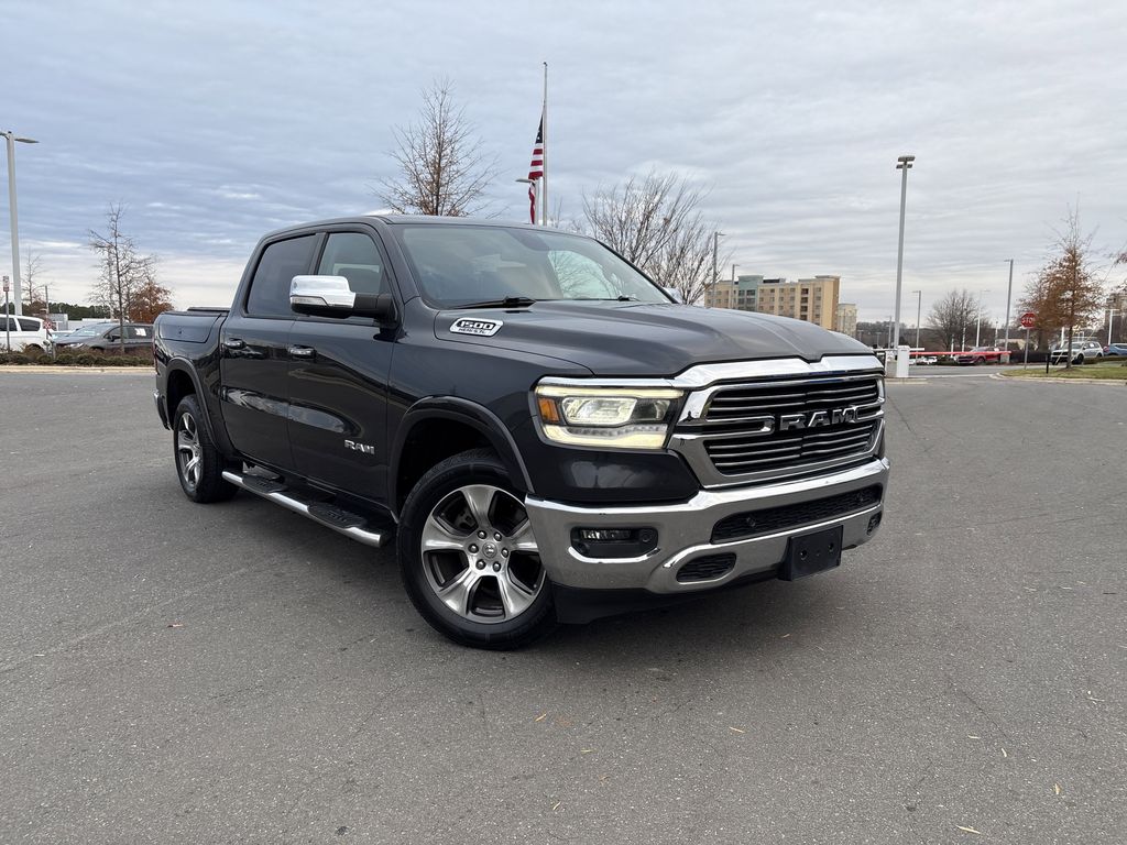 2019 Ram 1500 Laramie Diamond Black Crystal Pearlcoat Laramie 4WD 8-Speed Automatic HEMI 5.7L V8 Multi Displacement VVT #1 Seat Foam Cushion, 1-Yr SiriusXM Guardian Trial, 10 Speakers, 12" Touchscreen Display, 3 Rear Seat Head Restraints, 3.21 Rear Axle Ratio, 33 Gallon Fuel Tank, 4 Way Front Headrests, 4-Wheel Disc Brakes, 48V Belt Starter Generator, 5-Year SiriusXM Traffic Service, 5-Year SiriusXM Travel Link Service, 8.4" Touchscreen Display, ABS brakes, Adjustable pedals, Advanced Safety Group, Air Conditioning, Alloy wheels, AM/FM radio: SiriusXM, Anti-Spin Differential Rear Axle, Apple CarPlay, Apple CarPlay/Android Auto, Audio memory, Auto-dimming door mirrors, Auto-dimming Rear-View mirror, Automatic temperature control, Brake assist, Bumpers: chrome, Chrome Appearance Group, Compass, Delay-off headlights, Disassociated Touchscreen Display, Dome Dual LED Reading Lamp, Driver door bin, Driver Seat Memory, Driver vanity mirror, Dual front impact airbags, Dual front side impact airbags, Dual-Pane Panoramic Sunroof, Electronic Stability Control, For Details, Visit DriveUconnect.com, Front & Rear Rubber Floor Mats, Front anti-roll bar, Front Center Armrest w/Storage, Front dual zone A/C, Front fog lights, Front reading lights, Front Seat Back Map Pockets, Front wheel independent suspension, Fully automatic headlights, Garage door transmitter, Google Android Auto, GPS Antenna Input, GPS Navigation, HD Radio, Heated door mirrors, Heated Front Seats, Heated front seats, Heated Steering Wheel, Heated steering wheel, Illuminated entry, Integrated Center Stack Radio, Laramie Level 2 Equipment Group, Leather steering wheel, Leather Trim 40/20/40 Bench Seat, LED Dome/Reading Lamp, Low tire pressure warning, Manufacturer's Statement of Origin, Memory seat, No Satellite Coverage w/HI/AK/PR/VI/GU, Occupant sensing airbag, Outside temperature display, Overhead airbag, Overhead console, Panic alarm, ParkView Rear Back-Up Camera, Passenger door bin, Passenger vanity mirror, Pedal memory, Power 4-Way Driver Lumbar Adjust, Power 4-Way Passenger Lumbar Adjust, Power 8-Way Driver & Passenger Seats, Power Chrome Trailer Tow Mirrors, Power door mirrors, Power driver seat, Power passenger seat, Power steering, Power windows, Protection Group, Quick Order Package 25H Laramie, Radio data system, Radio: Uconnect 12 w/Navigation, Radio: Uconnect 4 w/8.4" Display, Rear anti-roll bar, Rear seat center armrest, Rear step bumper, Rear Underseat Compartment Storage, Rear window defroster, Remote keyless entry, Security system, Single Disc Remote CD Player, SiriusXM Satellite Radio, SiriusXM Traffic Plus, SiriusXM Travel Link, SiriusXM w/360L, Speed control, Split folding rear seat, Steering wheel mounted audio controls, Tachometer, Telescoping steering wheel, Tilt steering wheel, Tow Hooks, Traction control, Trailer Brake Control, Trailer Tow Group, Trailer Tow Mirrors, Trip computer, Turn signal indicator mirrors, USB Host Flip, Variably intermittent wipers, Ventilated Front Seats, Ventilated front seats, Voltmeter, Wheel to Wheel Side Steps, Wheels: 18" x 8" Aluminum Base Painted.