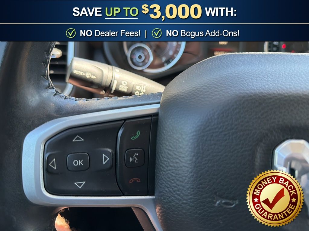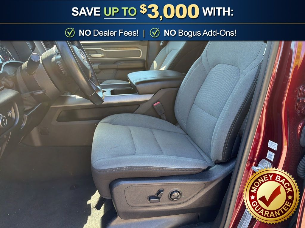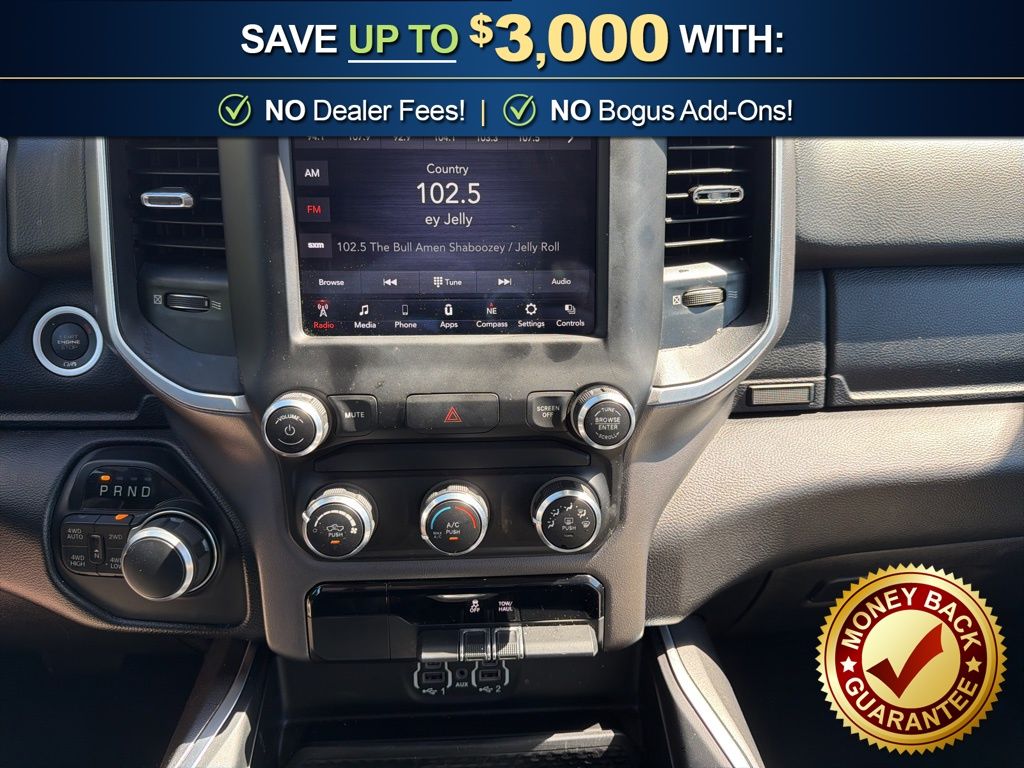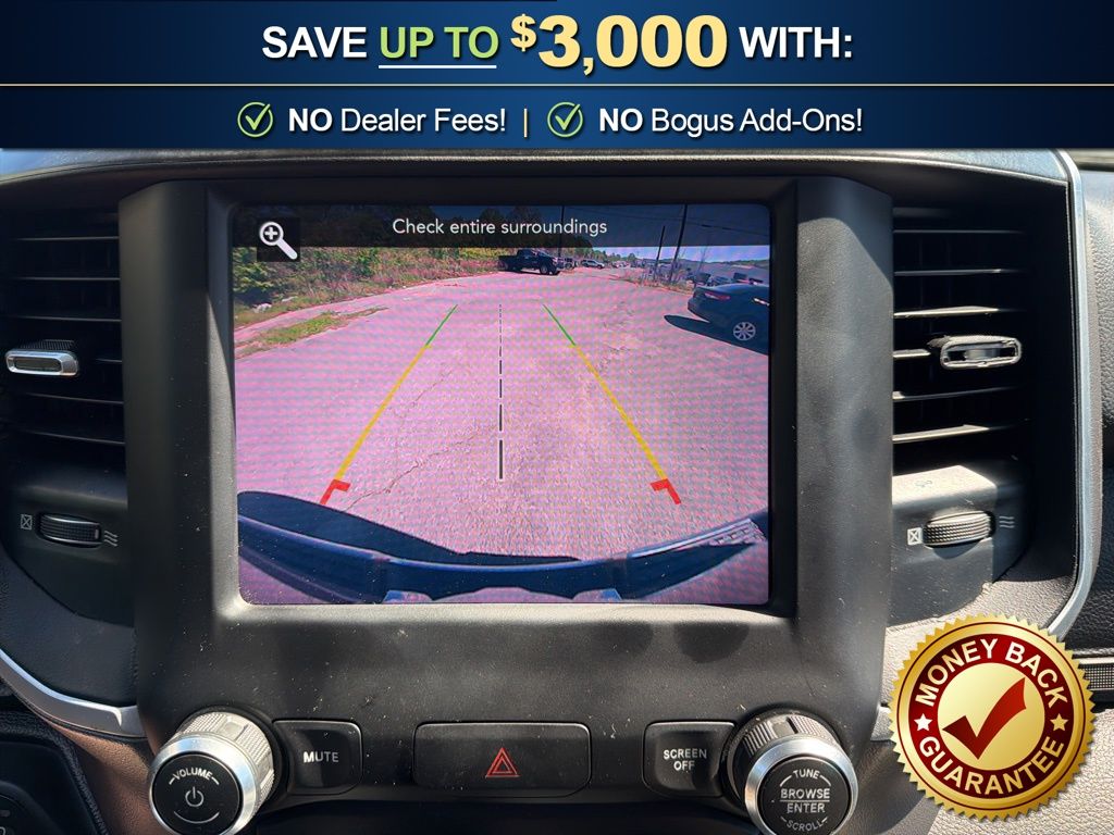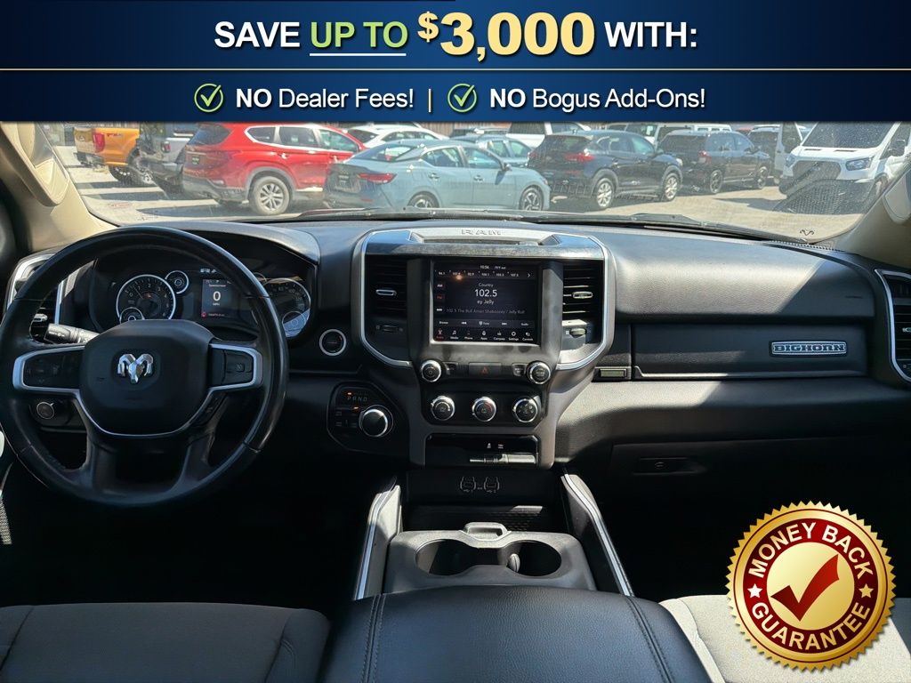 3 Rear Seat Head Restraints, 3.21 Rear Axle Ratio, 4 Way Front Headrests, 4-Wheel Disc Brakes, 48V Belt Starter Generator, 6 Speakers, ABS brakes, Air Conditioning, Alloy wheels, AM/FM radio, Anti-Spin Differential Rear Axle, Auto-Dimming Rear-View Mirror, Big Horn IP Badge, Big Horn Level 1 Equipment Group, Black Premium Power Mirrors, Brake assist, Bumpers: chrome, Class IV Receiver Hitch, Cloth Bench Seat, Cluster 3.5" TFT Color Display, Compass, Delay-off headlights, Driver door bin, Dual front impact airbags, Dual front side impact airbags, Electronic Stability Control, Foam Bottle Insert (Door Trim Panel), Front anti-roll bar, Front Center Armrest w/Storage, Front fog lights, Front reading lights, Front Seat Back Map Pockets, Front wheel independent suspension, Fully automatic headlights, Glove Box Lamp, GPS Antenna Input, Heated door mirrors, Illuminated entry, Leather steering wheel, Low tire pressure warning, Manual Adjust 4-Way Front Passenger Seat, Occupant sensing airbag, Outside temperature display, Overhead airbag, Overhead console, Panic alarm, ParkView Rear Back-Up Camera, Passenger door bin, Passenger vanity mirror, Power 4-Way Driver Lumbar Adjust, Power 8-Way Driver Seat, Power Adjustable Pedals, Power door mirrors, Power steering, Power windows, Quick Order Package 25Z Big Horn, Radio data system, Radio: Uconnect 3 w/5" Display, Radio: Uconnect 4 w/8.4" Display, Rear 60/40 Folding Seat, Rear anti-roll bar, Rear Dome w/On/Off Switch Lamp, Rear Power Sliding Window, Rear seat center armrest, Rear step bumper, Rear Window Defroster, Remote keyless entry, SiriusXM Satellite Radio, Speed control, Split folding rear seat, Steering wheel mounted audio controls, Sun Visors w/Illuminated Vanity Mirrors, Tachometer, Telescoping steering wheel, Tilt steering wheel, Traction control, Trip computer, Universal Garage Door Opener, Variably intermittent wipers, Voltmeter, Wheels: 18" x 8" Cast-Aluminum Painted, Wheels: 20" x 9" Aluminum Chrome Clad (WRK). 2020 Ram 1500 Big Horn/Lone Star