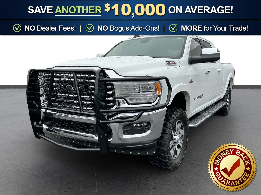 2022 Ram 2500 Longhorn Bright White Clearcoat Longhorn 4WD 6-Speed Automatic Cummins 6.7L I6 Turbodiesel 10 Speakers, 115V Auxiliary Rear Power Outlet, 2 Way Rear Headrest Seat, 220 Amp Alternator, 3.73 Axle Ratio, 4 Way Front Headrests, 4-Wheel Disc Brakes, 4G LTE Wi-Fi Hot Spot, 8.4" Touchscreen Display, ABS brakes, Active Noise Control System, Adjustable pedals, Air Conditioning, Alexa Built-In, Alloy wheels, AM/FM radio: SiriusXM with 360L, Apple CarPlay, Apple CarPlay/Android Auto, Audio memory, Auto High-beam Headlights, Auto-dimming Rear-View mirror, Automatic temperature control, Brake assist, Bucket Seats, Bumpers: chrome, Center Hub, Center Stop Lamp w/Cargo View Camera, Chrome Flat Wheel-to-Wheel Side Steps, Clearance Lamps, Compass, Connected Travel & Traffic Services, Connectivity - US/Canada, Delay-off headlights, Disassociated Touchscreen Display, Driver door bin, Driver vanity mirror, Dual front impact airbags, Dual front side impact airbags, Electronic Stability Control, Electronically Controlled Throttle, Front anti-roll bar, Front Bucket Seats, Front Center Armrest w/Storage, Front dual zone A/C, Front fog lights, Front reading lights, Front Seat Back Map Pockets, Full Length Premium Upgraded Floor Console, Fully automatic headlights, Garage door transmitter, Genuine wood console insert, Genuine wood dashboard insert, Genuine wood door panel insert, Global Telematics Box Module (TBM), Google Android Auto, GPS Antenna Input, GPS Navigation, HD Radio, Heated door mirrors, Heated Front Seats, Heated front seats, Heated rear seats, Heated Second Row Seats, Heated Steering Wheel, Heated steering wheel, High Back Seats, Illuminated entry, Integrated Center Stack Radio, Integrated Voice Command w/Bluetooth, Leather steering wheel, Low tire pressure warning, Memory seat, Navigation System, Occupant sensing airbag, Off-Road Information Pages, Outside temperature display, Overhead airbag, Overhead console, Panic alarm, ParkView Rear Back-Up Camera, Passenger door bin, Passenger vanity mirror, Pedal memory, Power 2-Way Driver Lumbar Adjust, Power 2-Way Passenger Lumbar Adjust, Power Adjust 8-Way Driver Seat, Power Adjust 8-Way Front Passenger Seat, Power door mirrors, Power driver seat, Power passenger seat, Power steering, Power Sunroof, Power windows, Premium Filigree Leather Seats, Quick Order Package 2HK Longhorn, Radio data system, Radio: Uconnect 5 Nav w/8.4" Display, Radio/Driver Seat/Mirrors/Pedals Memory, Rain sensing wipers, Rear 60/40 Folding Seat, Rear anti-roll bar, Rear Backup Alarm, Rear reading lights, Rear seat center armrest, Rear step bumper, Rear window defroster, Remote keyless entry, Security system, Selectable Tire Fill Alert, SiriusXM Radio Service, SiriusXM w/360L, Speed control, Split folding rear seat, Steering wheel mounted audio controls, Tachometer, Tilt steering wheel, Tip Start, Traction control, Trip computer, Turn signal indicator mirrors, Variably intermittent wipers, Vendor Painted Cargo Box, Vendor Painted Cargo Box Tracking, Ventilated Front Seats, Ventilated front seats, Voltmeter, Wheels: 18" x 8.0" Diamond Cut Face Aluminum, Wheels: 20" x 8.0" Diamond Cut Face Aluminum.