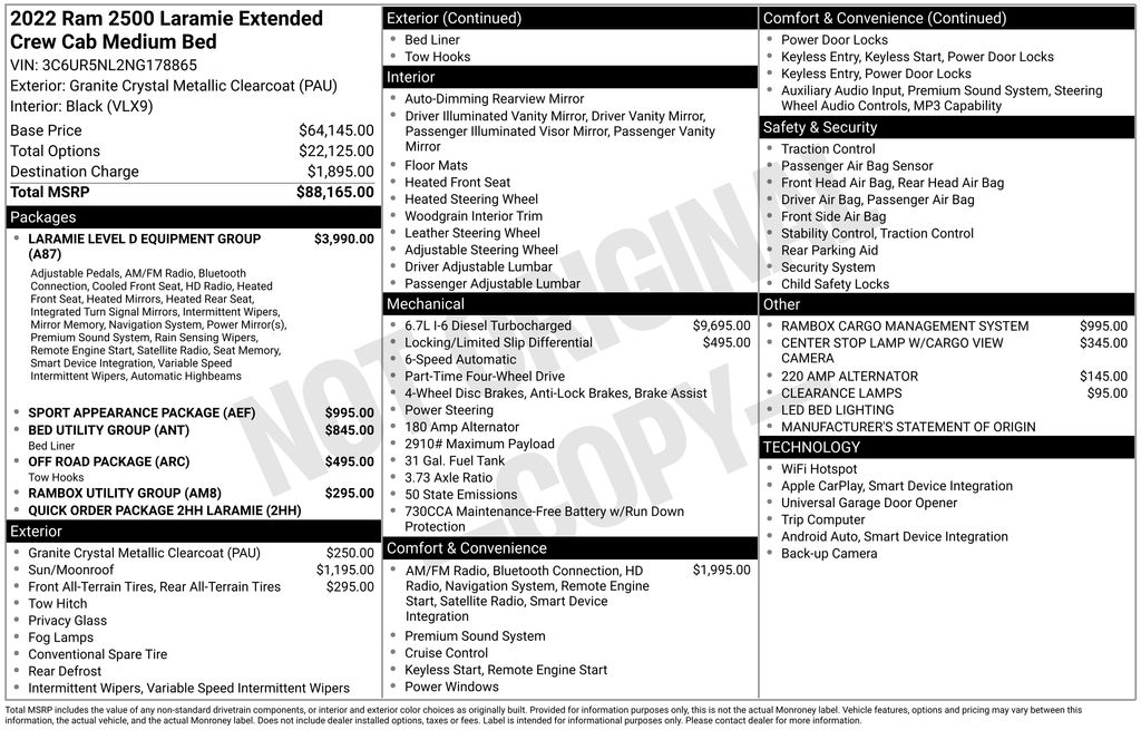 2022 Ram 2500 Laramie Truck Mega Cab I-6 cyl