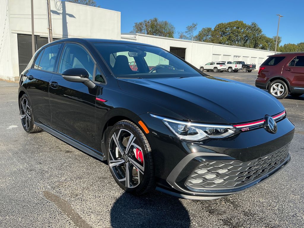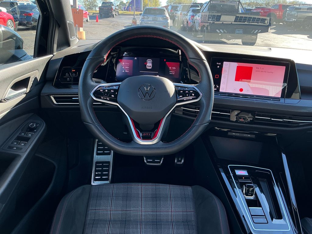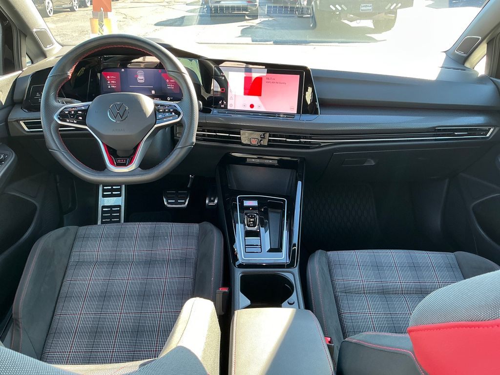 2024 Volkswagen Golf GTI 2.0T SE Black 2.0T SE FWD 7-Speed DSG Automatic with Tiptronic 2.0L TSI DOHC 4-Wheel Disc Brakes, 9 Speakers, ABS brakes, Air Conditioning, Alloy wheels, AM/FM radio: SiriusXM with 360L, Auto-dimming Rear-View mirror, Automatic temperature control, Brake assist, Bumpers: body-color, Cloth Seating Surfaces, Compass, Delay-off headlights, Driver door bin, Driver vanity mirror, Dual front impact airbags, Dual front side impact airbags, Electronic Stability Control, Emergency communication system: VW Car-Net Safe & Secure 5-year, Exterior Parking Camera Rear, Forward collision: FCW w/Autonomous Emergency Braking mitigation, Four wheel independent suspension, Front anti-roll bar, Front Bucket Seats, Front Center Armrest, Front fog lights, Front reading lights, Fully automatic headlights, harman/kardon® Speakers, Heated door mirrors, Heated front seats, Heated Front Top Sport Seats, Heated steering wheel, Illuminated entry, Lane Departure Warning System, Leather steering wheel, Low tire pressure warning, Navigation System, Occupant sensing airbag, Outside temperature display, Overhead airbag, Overhead console, Panic alarm, Passenger door bin, Passenger vanity mirror, Power door mirrors, Power driver seat, Power moonroof: Panoramic, Power passenger seat, Power steering, Power windows, Radio data system, Radio: MIB3 Discover Pro w/10" Touchscreen Navi, Rain sensing wipers, Rear anti-roll bar, Rear reading lights, Rear seat center armrest, Rear window defroster, Rear window wiper, Remote keyless entry, Security system, Speed control, Speed-sensing steering, Speed-Sensitive Wipers, Split folding rear seat, Spoiler, Sport steering wheel, Steering wheel mounted audio controls, Tachometer, Telescoping steering wheel, Tilt steering wheel, Traction control, Trip computer, Turn signal indicator mirrors, Variably intermittent wipers, Wheels: 18" 2-Tone Machined Alloy.